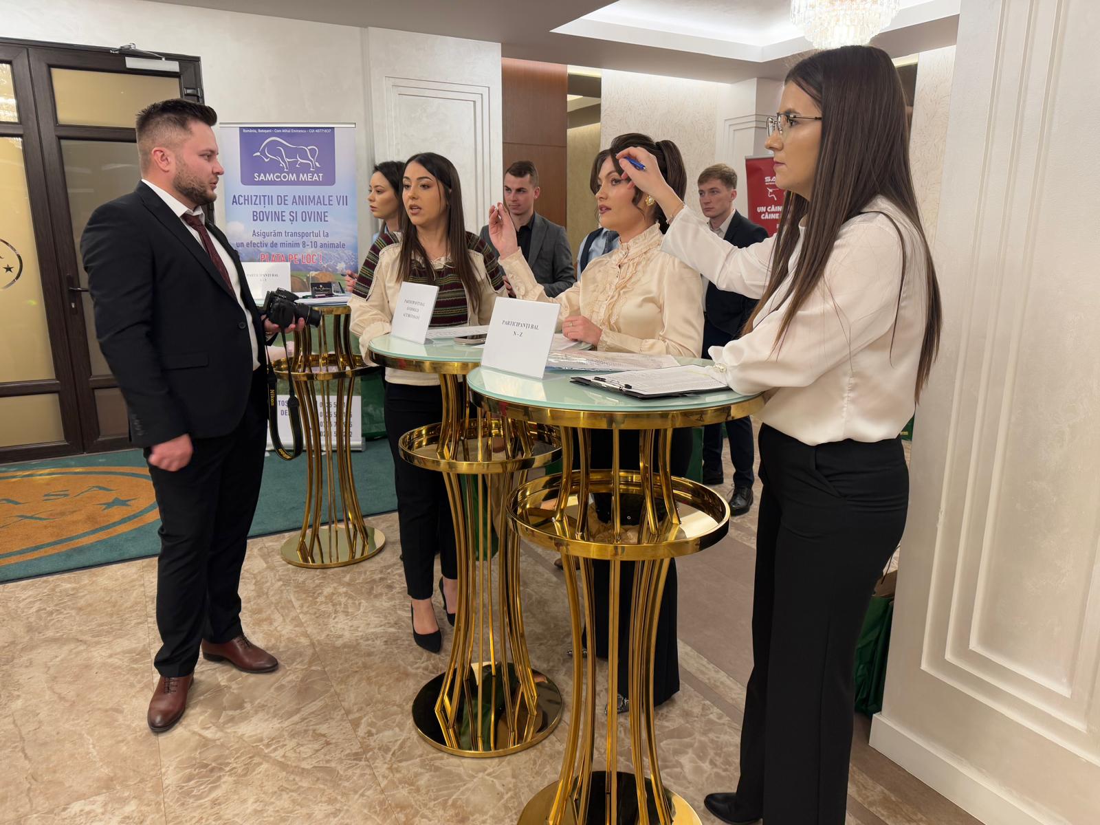 În sală pot fi observate mai multe panouri de promovare ale unor firme din Botoșani din procesarea cărnii, a produselor lactate, distribuția vinului sau fashion.