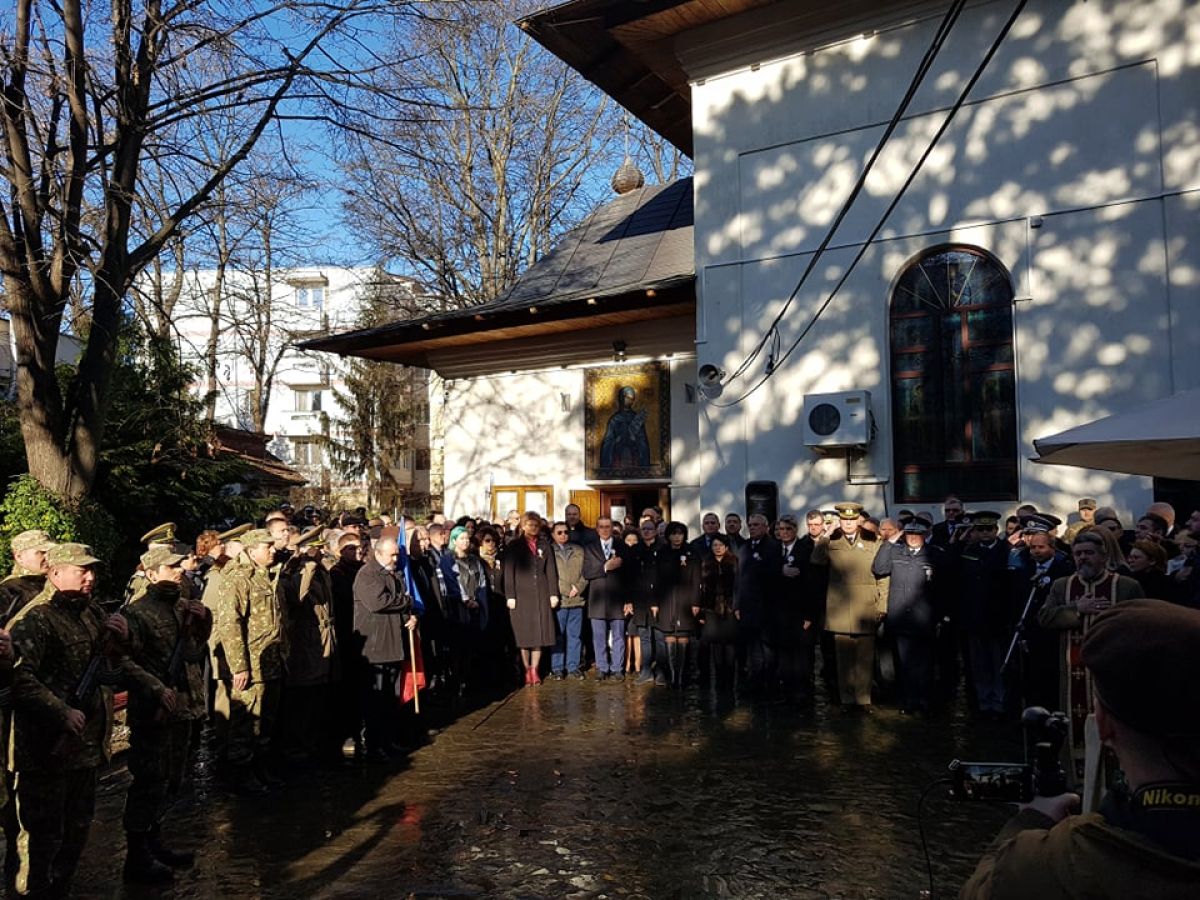 După ce au depus o jerbă de flori la placa comemorativă de pe Palatul Administrativ, reprezentanții Asociației Revoluționare 22 – 25 Decembrie 1989, alături de oficialități, s-au deplasat la amintitul lăcaș de cult.