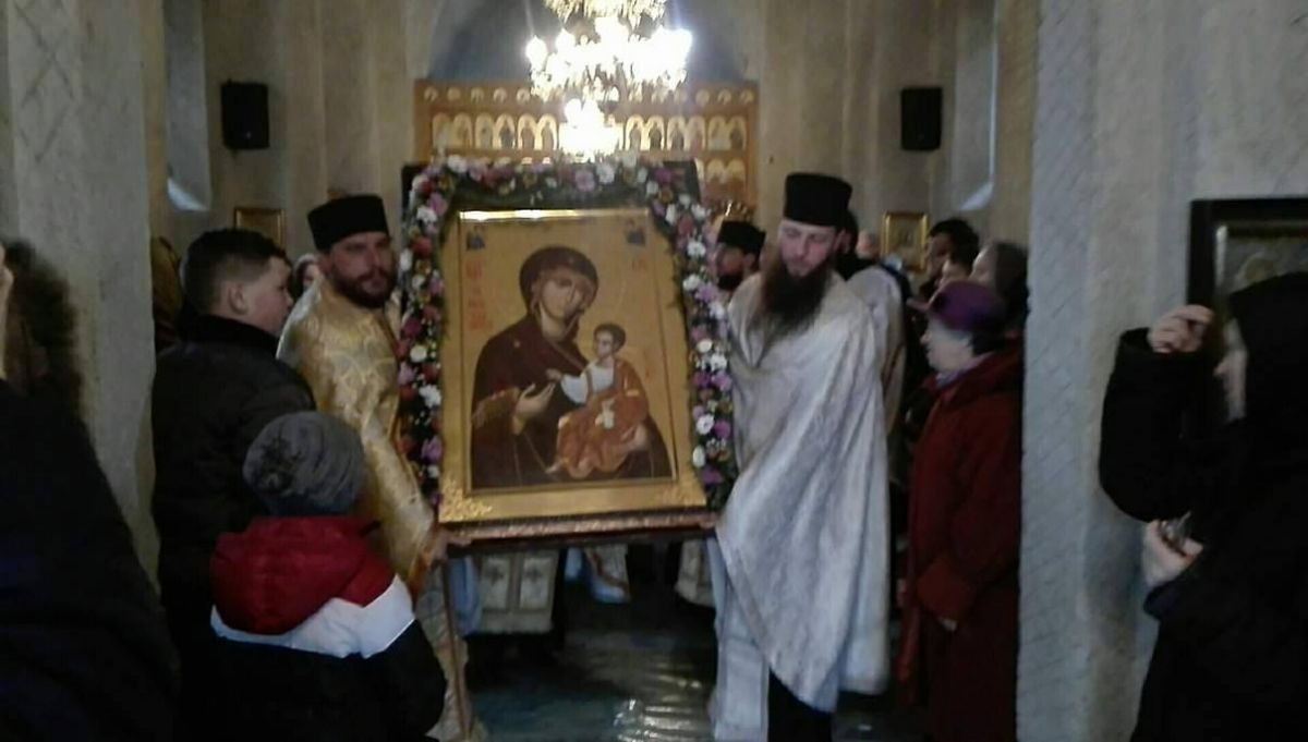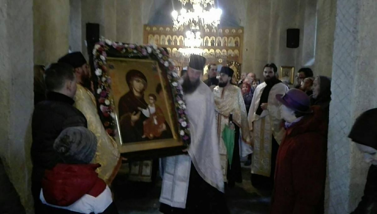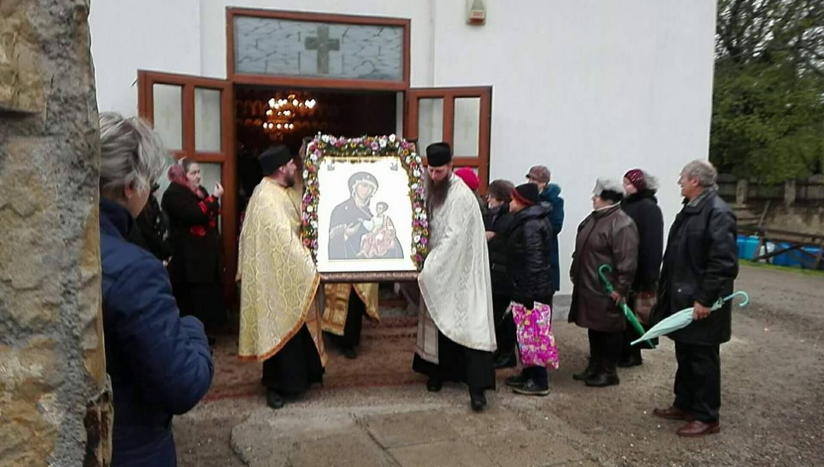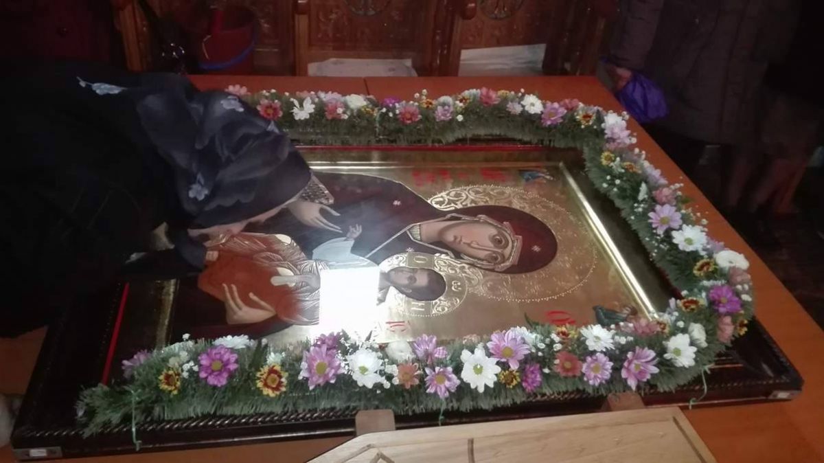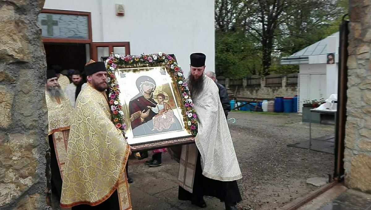 Aceştia poartă Sfânta Icoană „Portăriţa” a Maicii Domnului adusă anul trecut de preotul paroh Ioan Alupoaie de la Muntele Athos şi moaştele Sfintei Mari Muceniţe Anastasiei Romana.