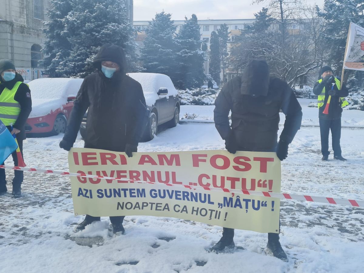 Au venit cu mai multe pancarte cu diferite mesaje precum: Ieri am fost Guvernul Cuțu, azi suntem Guvernul Mâțu, Noaptea ca hoții! Protestul a început cu intonarea Imnului Național al României.