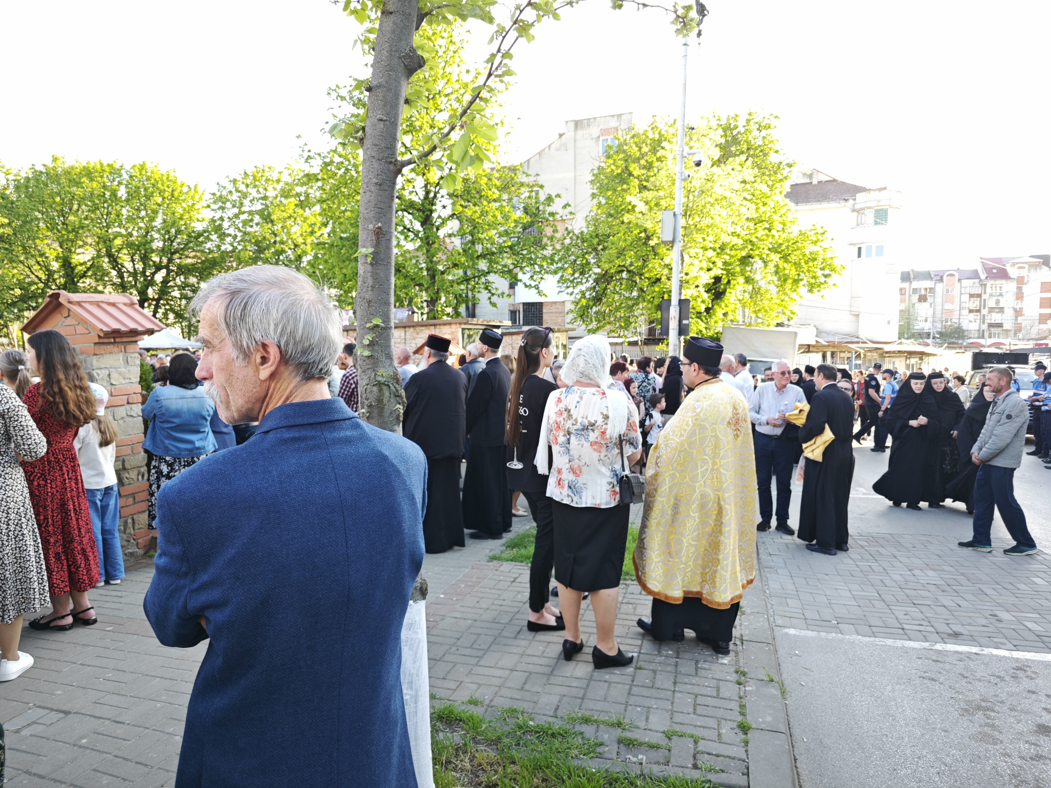 Mai întâi, s-a oficiat slujba Vecerniei și a Litiei, iar după ora 18:30 începe procesiunea cu moaștele Sfântului Gheorghe Pelerinul.