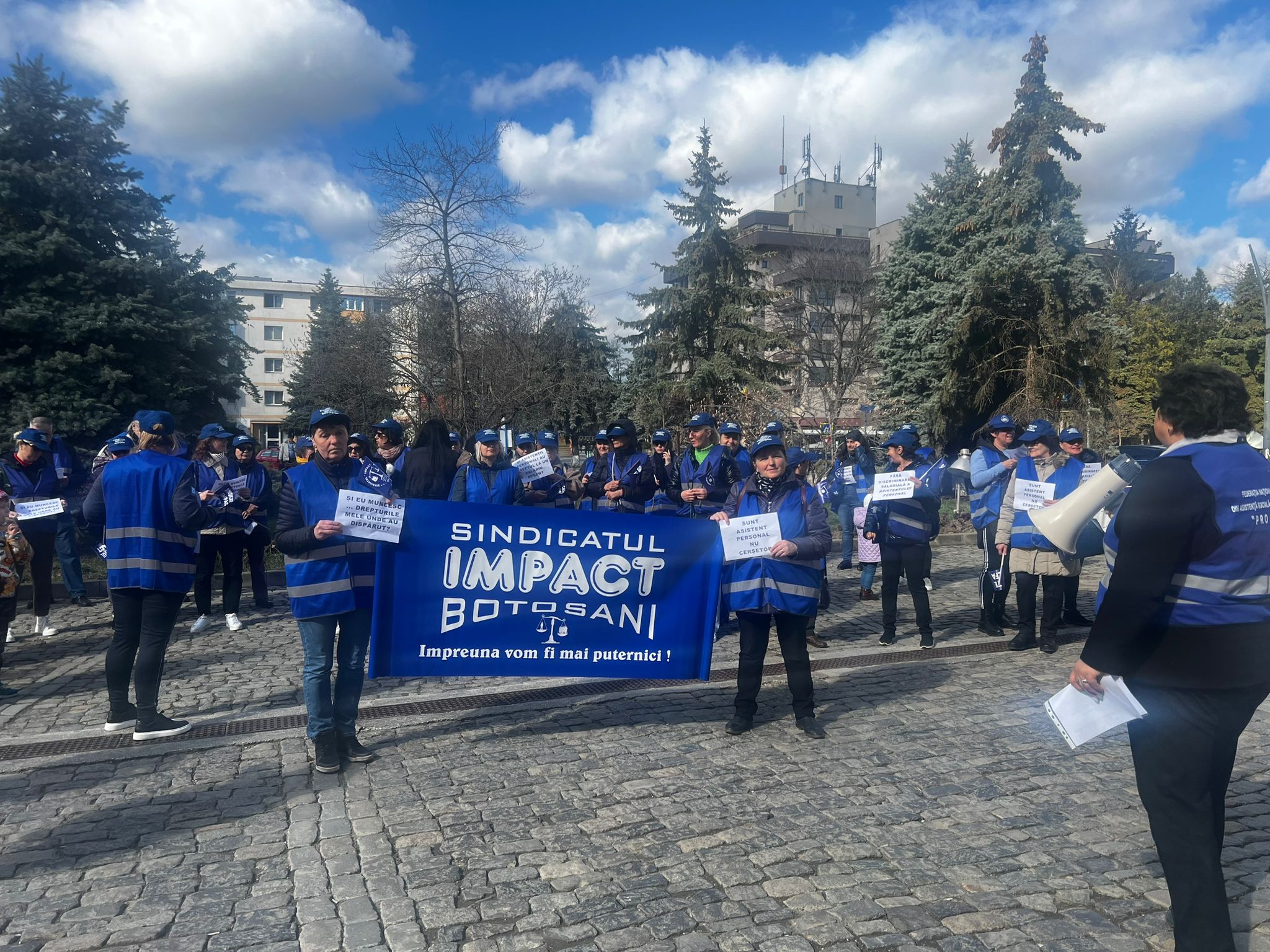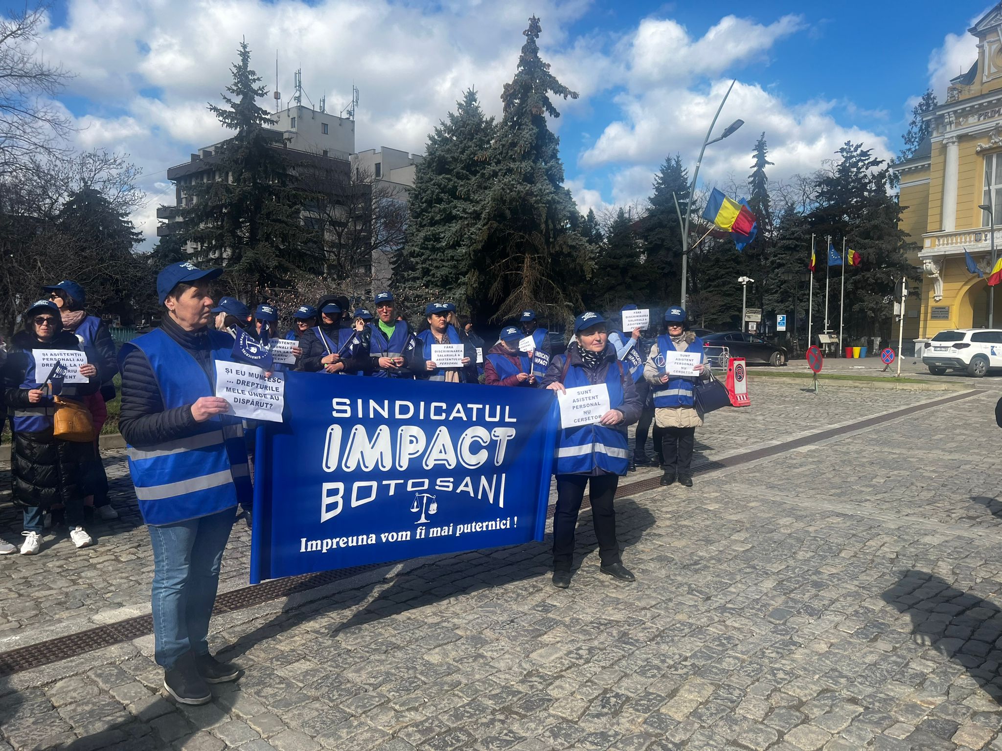 În aceste momente, mai mulți membri ai Sindicatului Impact protestează în Piața Revoluției.