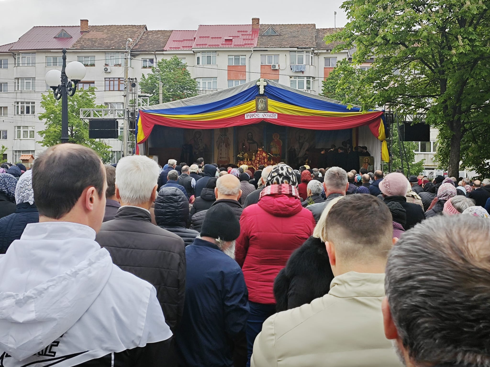 De asemenea, a fost pus și un ecran uriaș pentru ca botoșănenii să poată urmări slujba, având în vedere numărul mare de participanți.