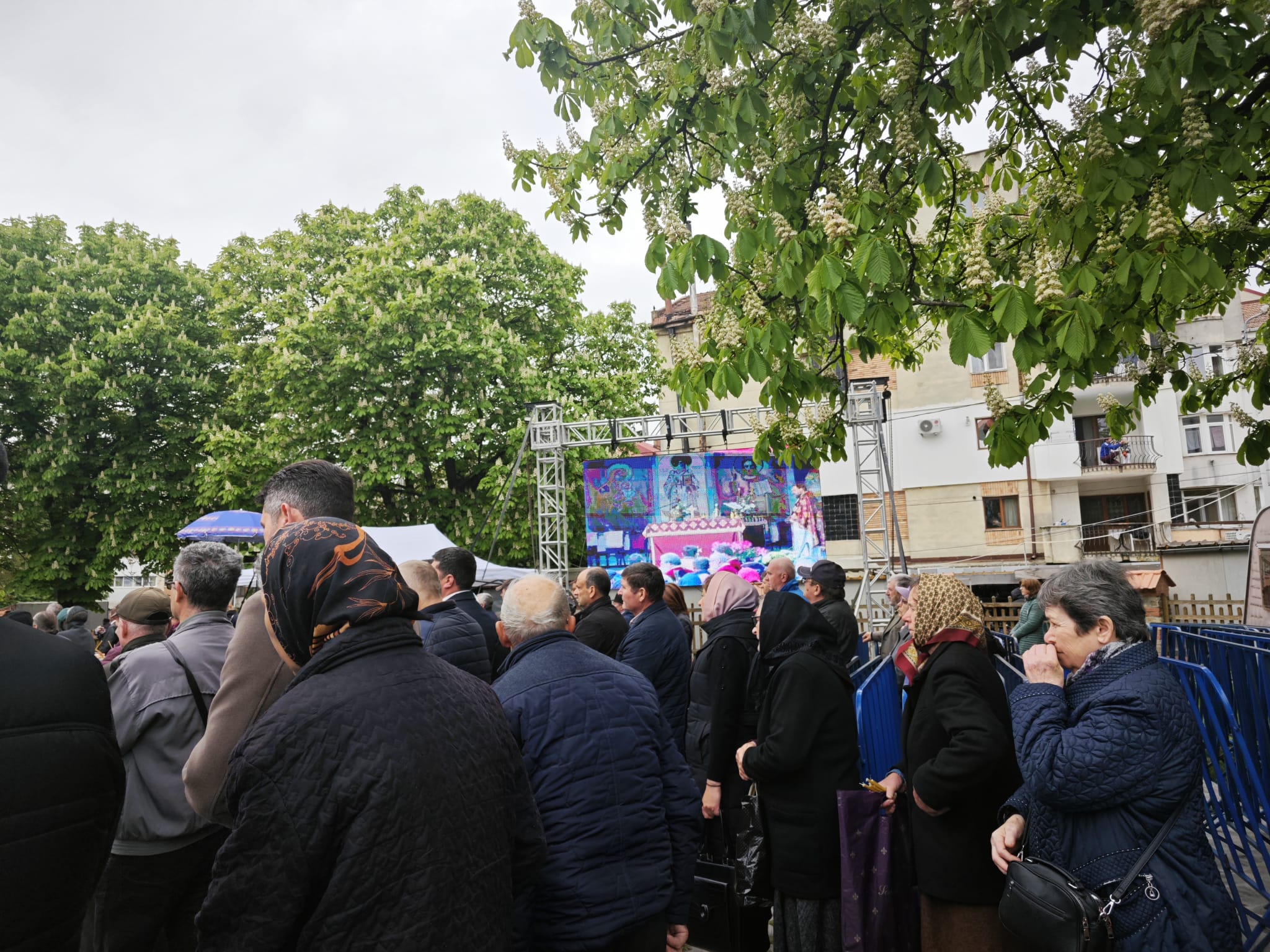 Curtea lăcașului de cult este aproape plină în aceste momente de credincioși, care au venit să participe la slujba de Sfântul Gheorghe.
