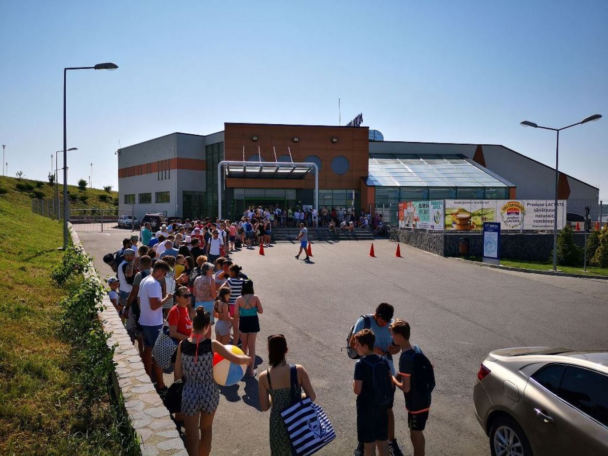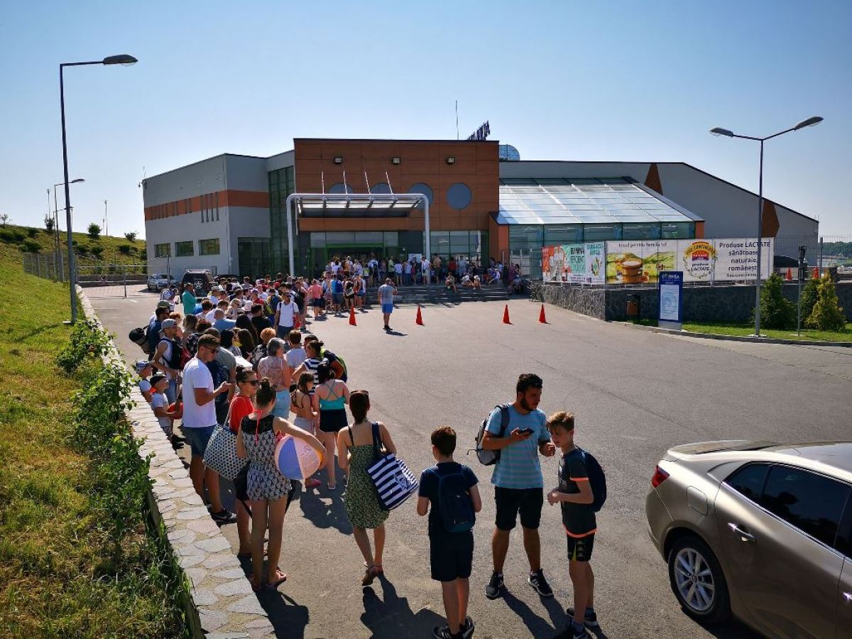 Imagini memorabile pot fi văzute în aceste clipe la Cornișa Aquapark & Sports. În apropierea piscinelor sute de oameni au format o coadă care se întinde pe zeci de metri.