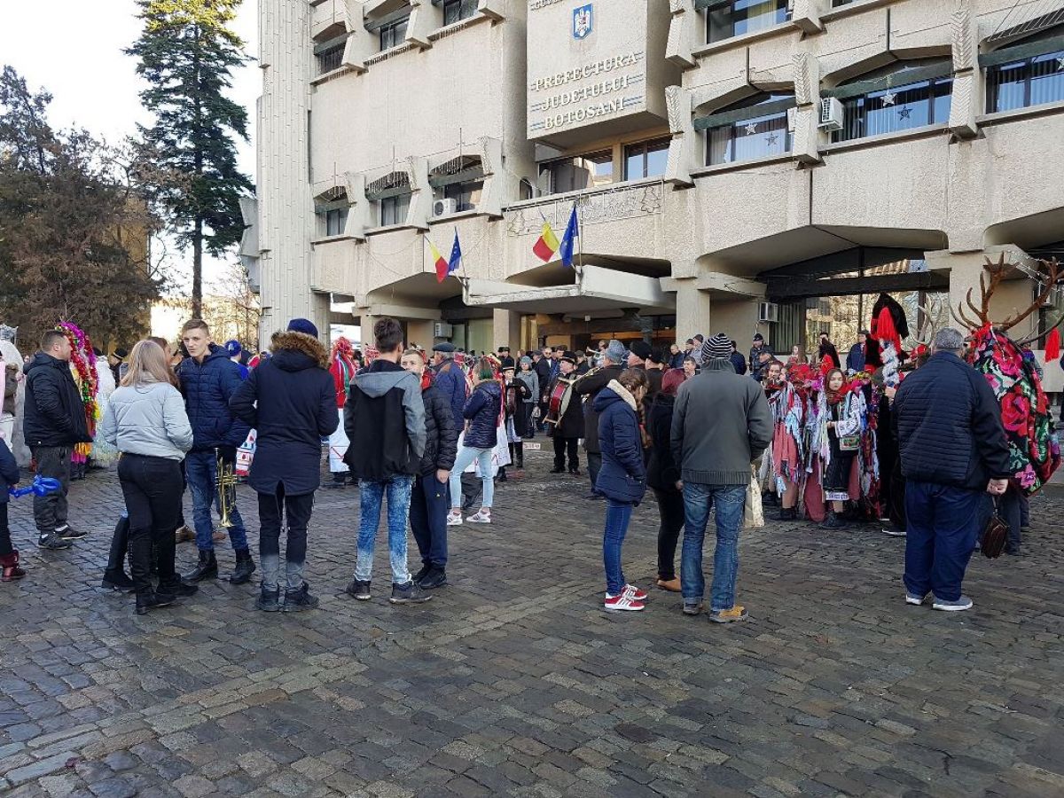 Centrul orașului este plin ochi la această oră. Sute de urători din Botoșani, dar și din Iași, Vrancea, Bacău, Suceava, Vaslui și Vrancea au ocupat Piața Revoluției și o bună porțiune din strada Cuza Vodă.