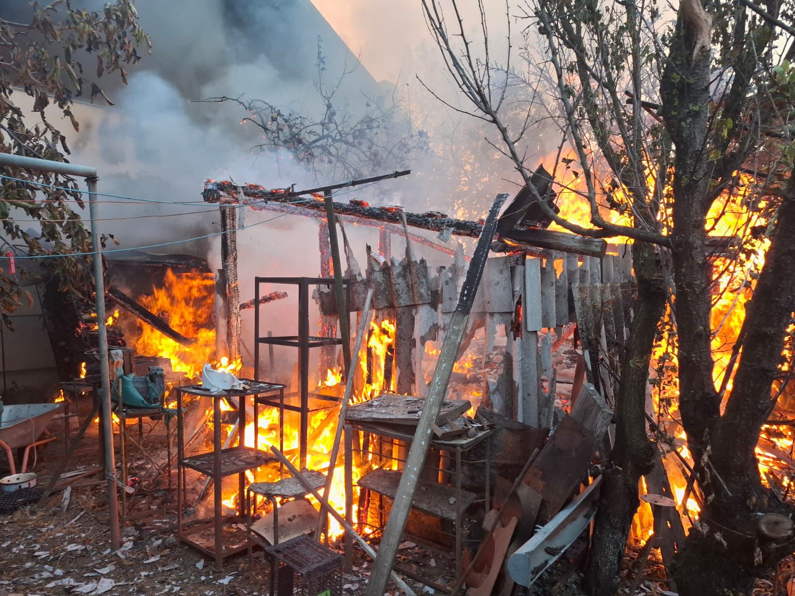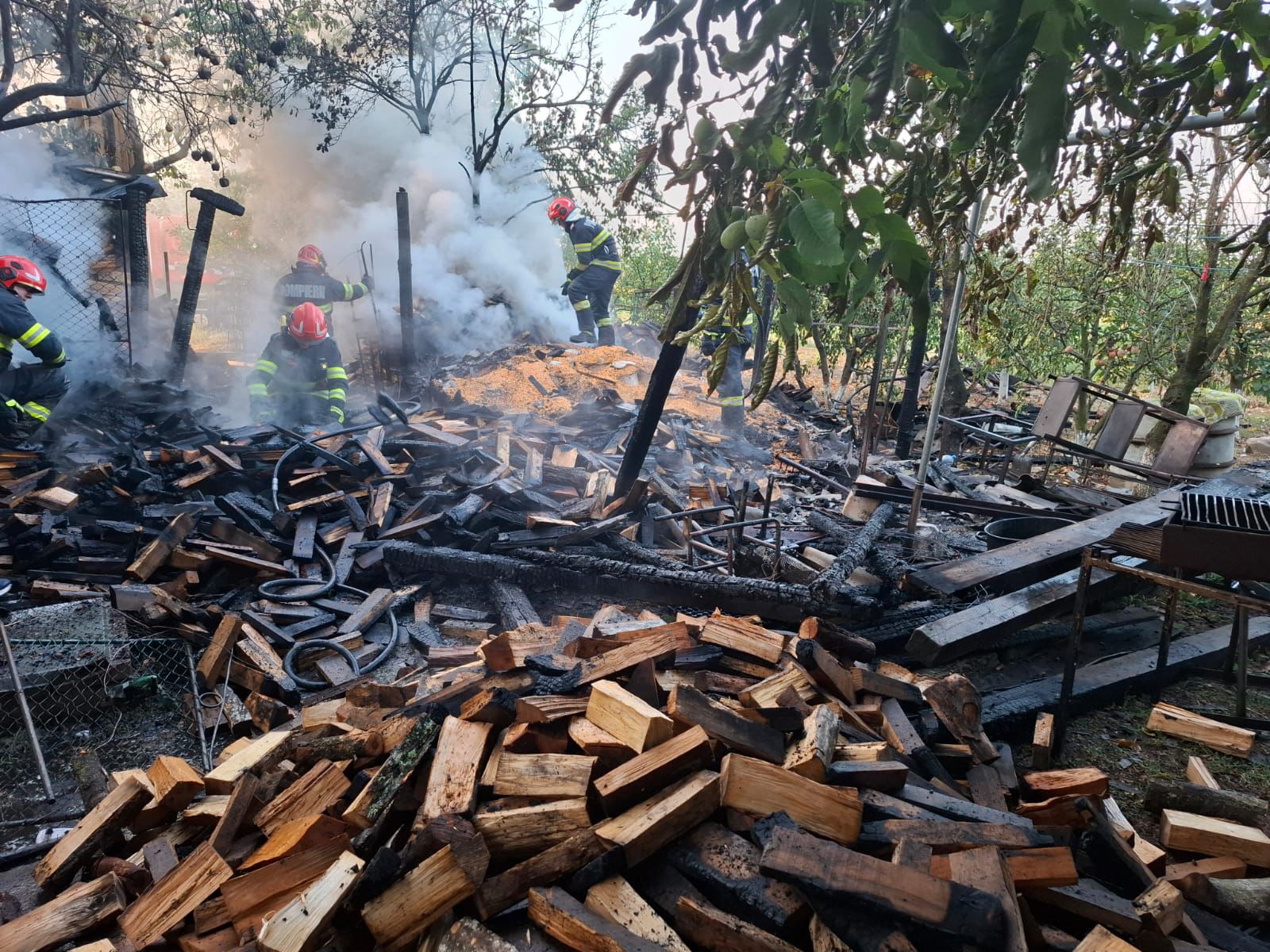 Flăcările violente au distrus un depozit de lemne și cereale.
