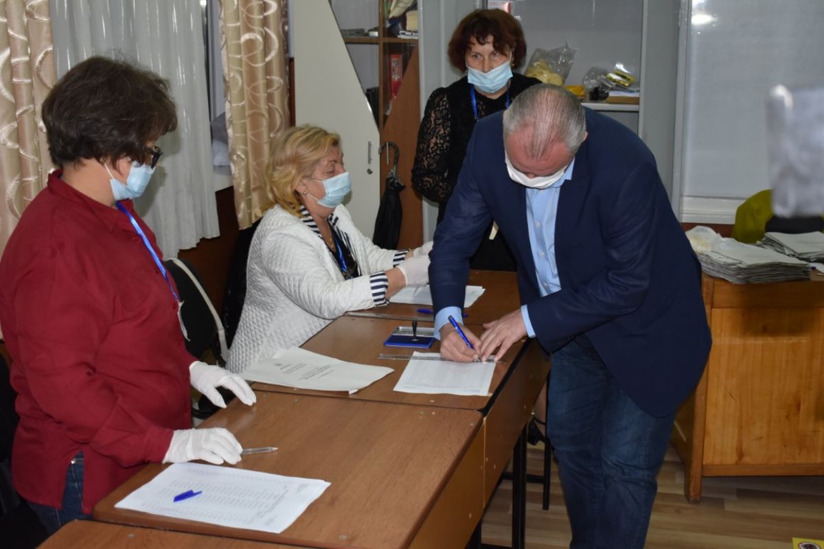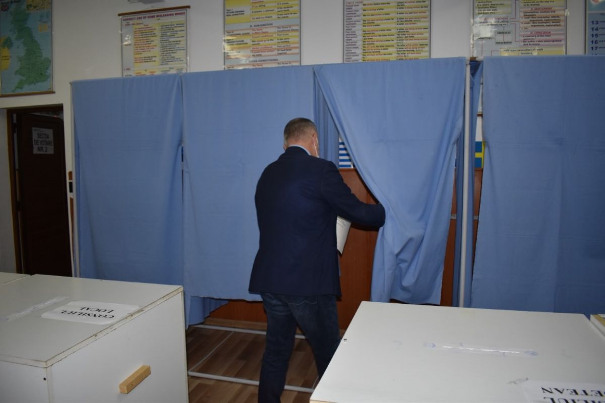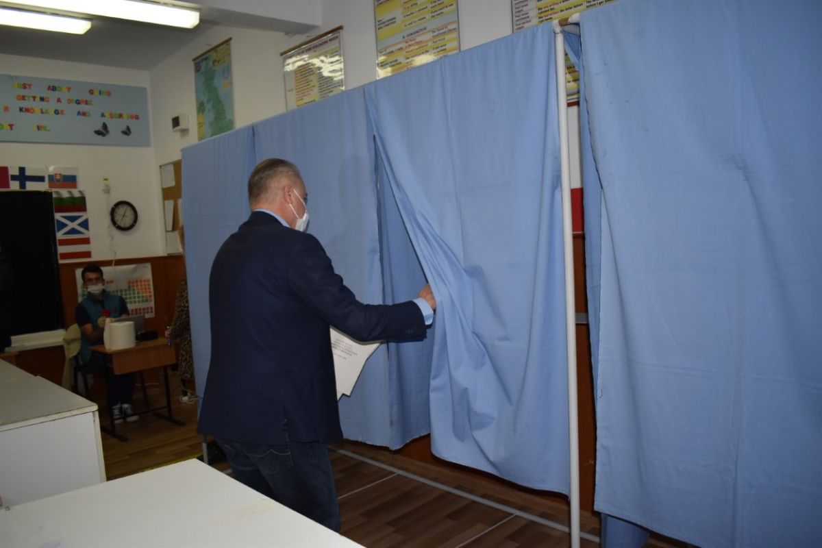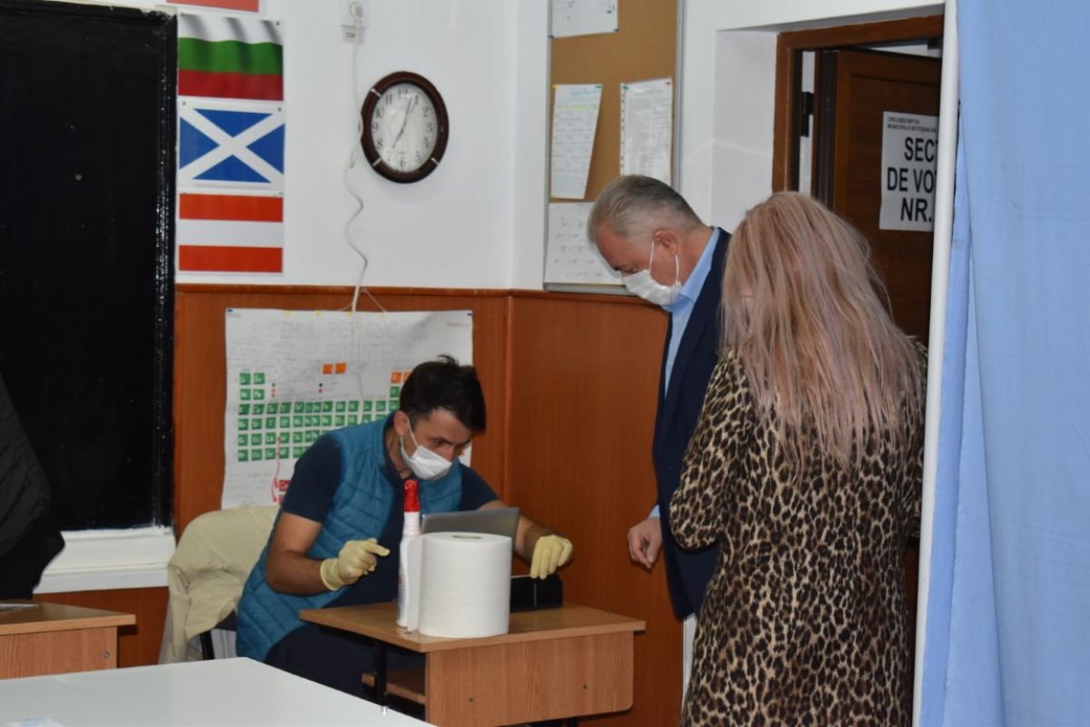 Cătălin Flutur, primarul municipiului reședință de județ, împreună cu soția sa, Gabriela, au votat la deschiderea secțiilor de vot, la ora 7:00, la Liceul de Artă ”Ștefan Luchian”.