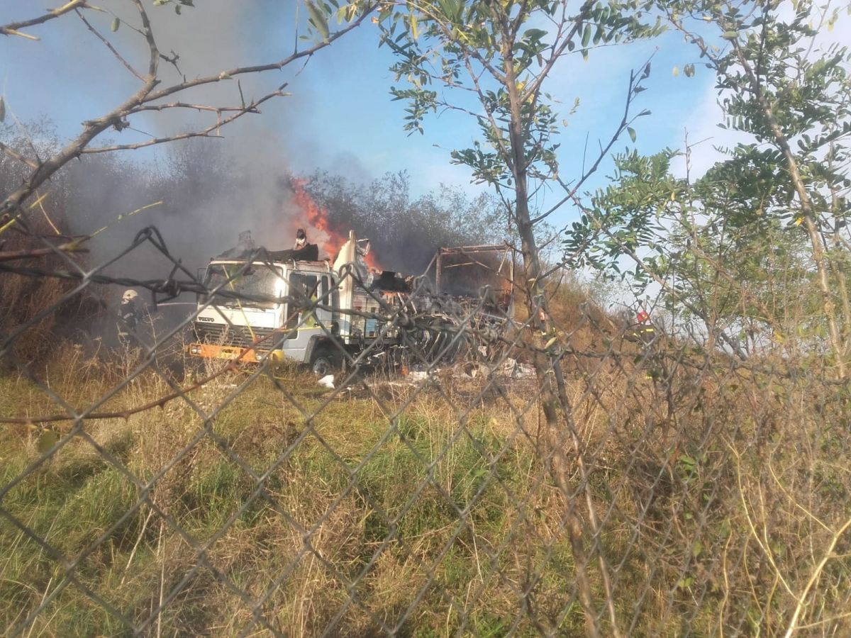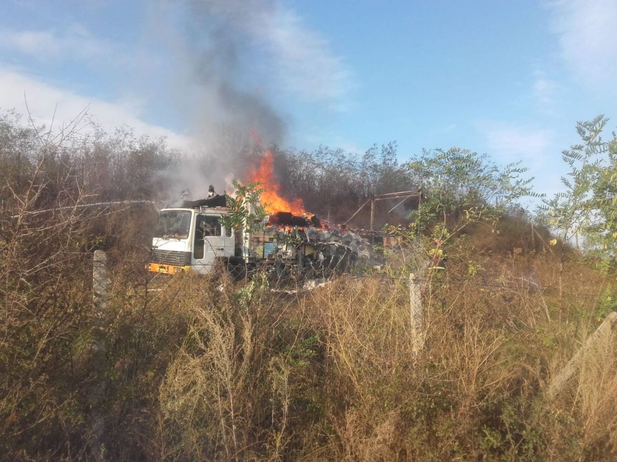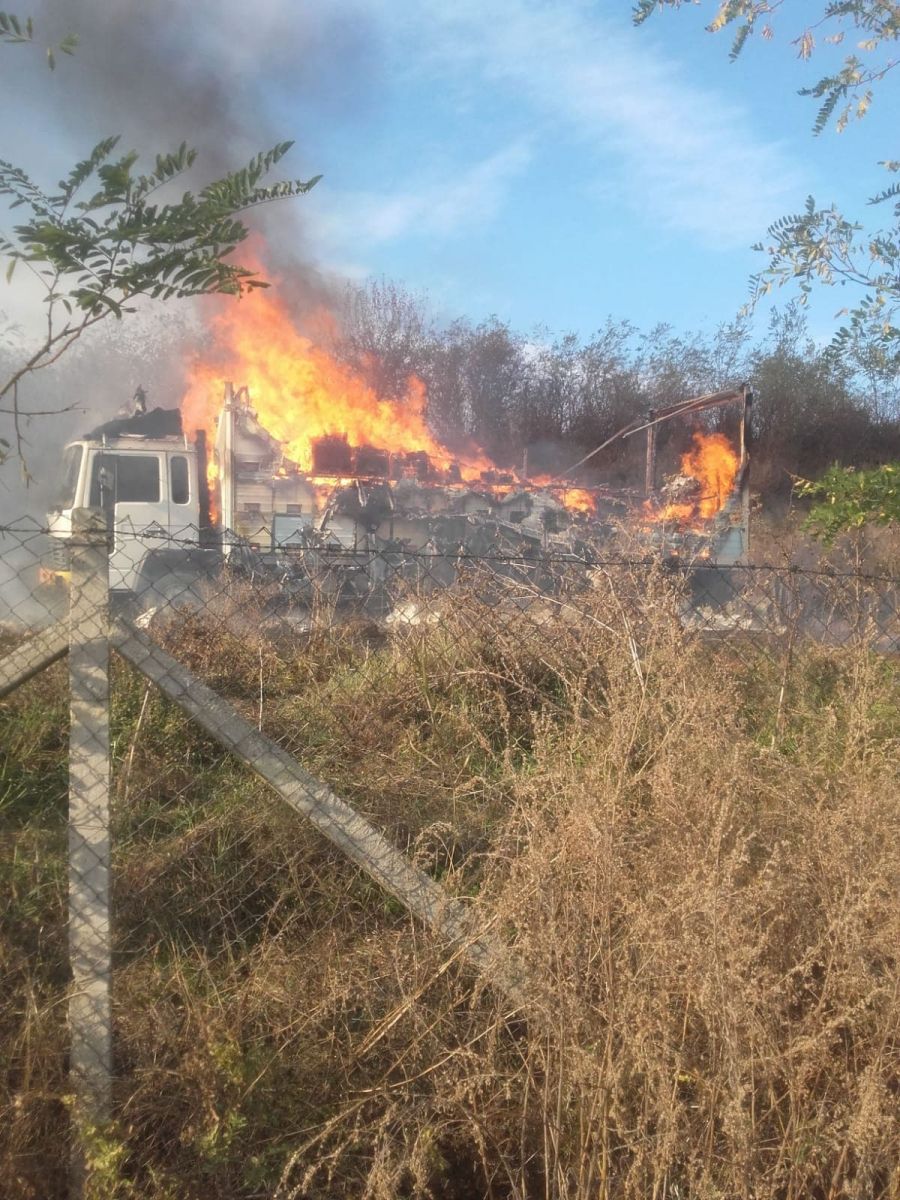 La sosirea forțelor de intervenție la fata locului, ardea camionul, existând pericolul de propagare a flăcărilor la o liziera. Incendiul este localizat și se acționează pentru stingerea lui și inlaturarea efectelor.