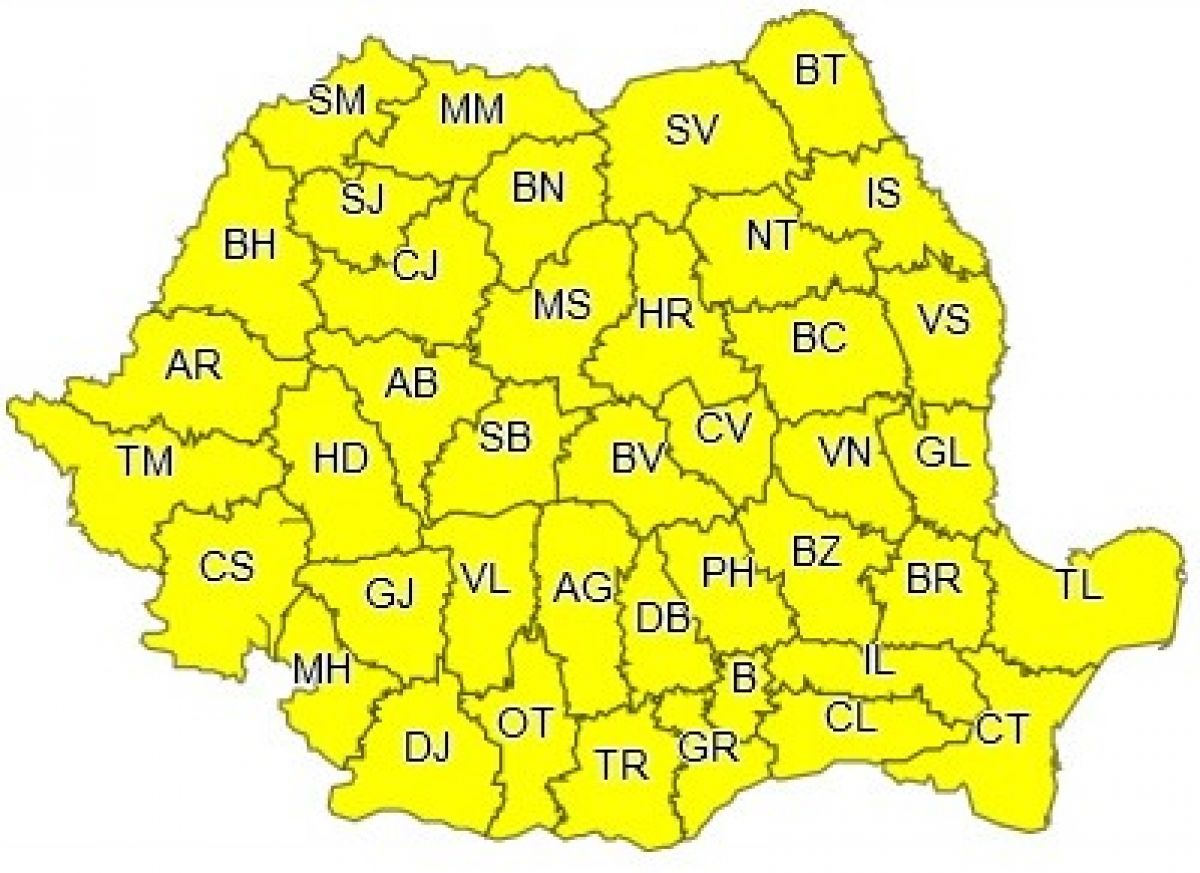 Administrația Națională de Meteorologie a emis o avertizare de tip Cod Galben pentru întreaga țară, începând de marți dimineață.