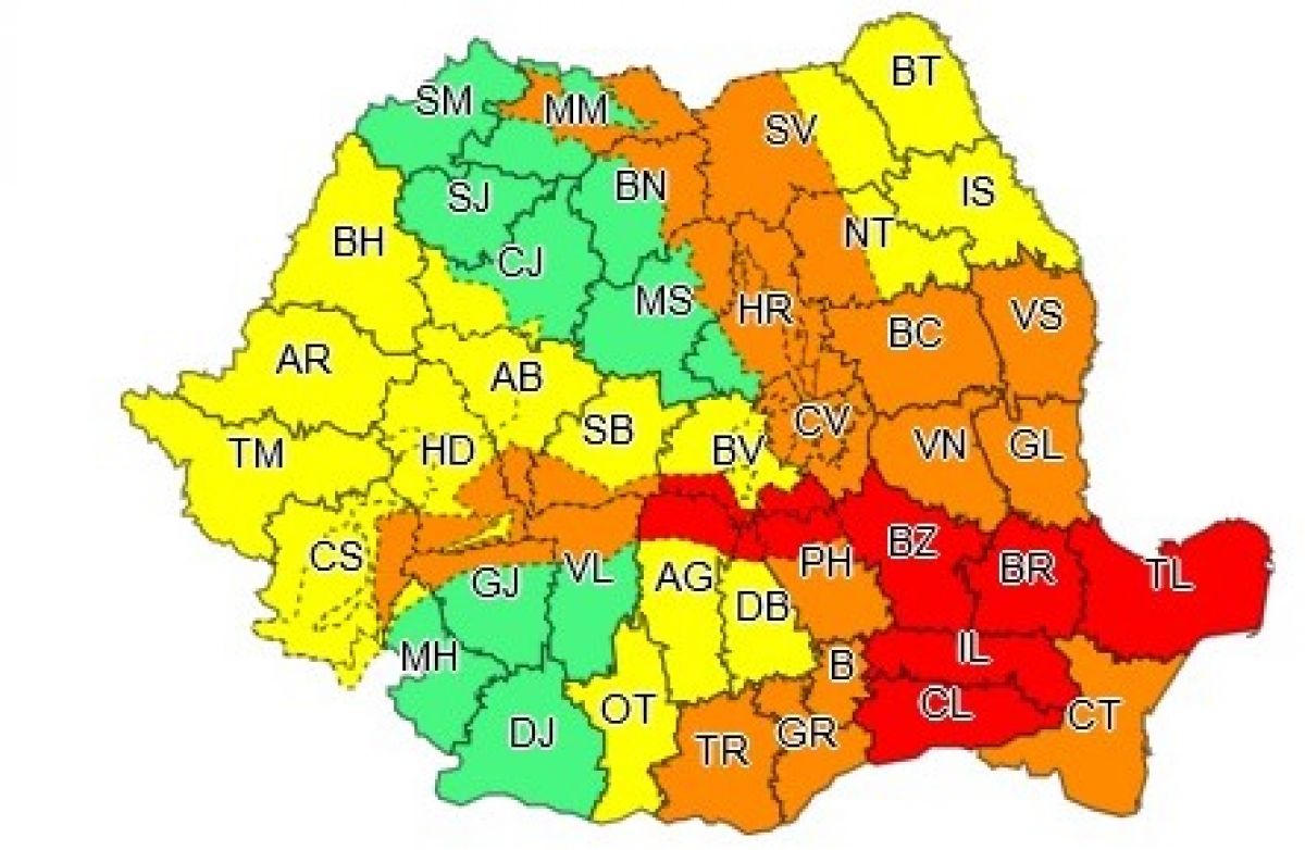 De asemenea, în mai multe județe din țară a fost emis Codul Roșu (vezi harta), valabil pentru perioada 5 februarie, ora 22:00 - 6 februarie, ora 08:00. Fenomene vizate: intensificări puternice ale vântului cu rafale de peste 85...90 km/h, viscol, vizibilitate redusă semnificativ. Zone vizate: județele Buzău, Brăila, Ialomița, Călărași și Tulcea. În județele Buzău, Brăila, Ialomița, Călărași și Tulcea vor fi intensificări puternice ale vântului cu rafale de peste 85...90 km/h, temporar va fi viscol și vizibilitatea redusă semnificativ.