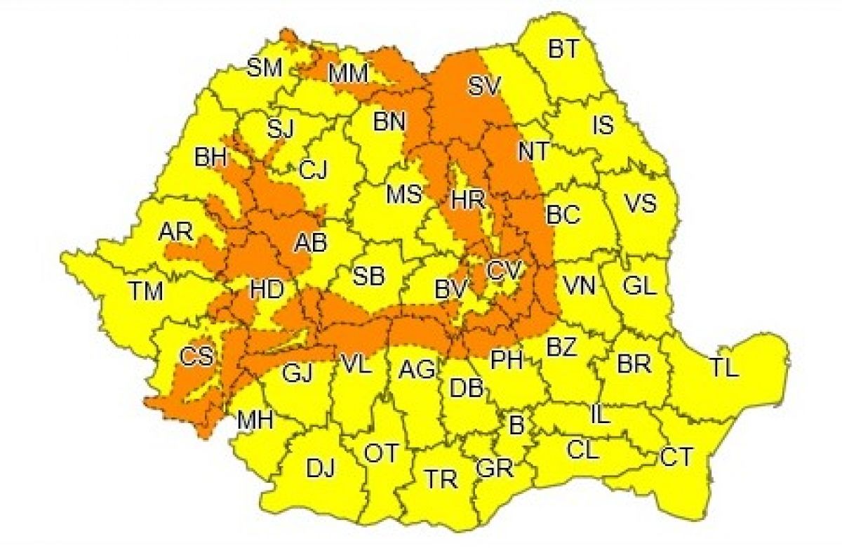 De asemenea, Cod Portocaliu a fost emis în mai multe județe din țară. Avertismentul este valabil de duminică, 23 februarie, ora 20:00, până pe 24 februarie, ora 18:00.