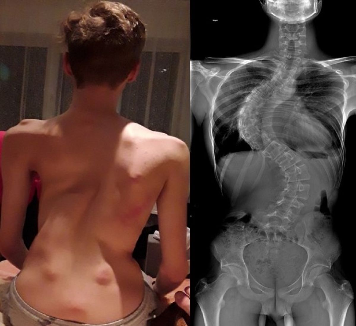 Tatăl a mers cu el la mai multe clinici, însă din păcate, unele tratamente nu au fost eficiente, ba poate chiar greșite. Deși a purtat corset și a urmat și alte tratamente, situația s-a înrăutățit. Astăzi, coloana vertebrală a lui Alex e înclinată la 98 de grade!