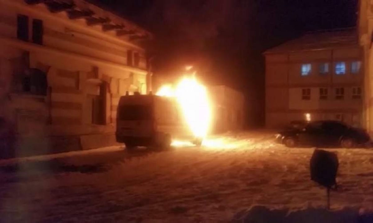 La un moment dat, aproape de ora trei dimineața, angajații instituției au văzut cum autospeciala este cuprinsă de flăcări în partea din față.