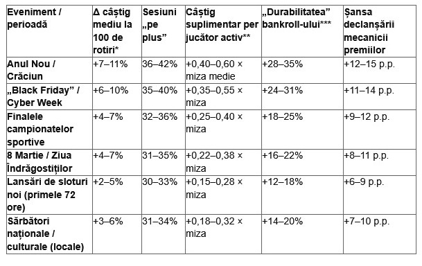 Analizele arată că promoțiile asociate cu evenimente reale generează cu 35–40% mai multă implicare decât bonusurile săptămânale obișnuite. Motivul este simplu — jucătorii se simt parte dintr-un context comun, mai ales atunci când promoția este legată de ceva care deja stârnește emoții: finala Ligii Campionilor, Anul Nou, „Black Friday” sau Ziua Îndrăgostiților. În plus, această abordare întărește încrederea: când un brand împărtășește aceleași momente culturale sau sportive cu publicul său, el este perceput ca un participant real la viața comunității, nu doar ca o sursă de oferte.