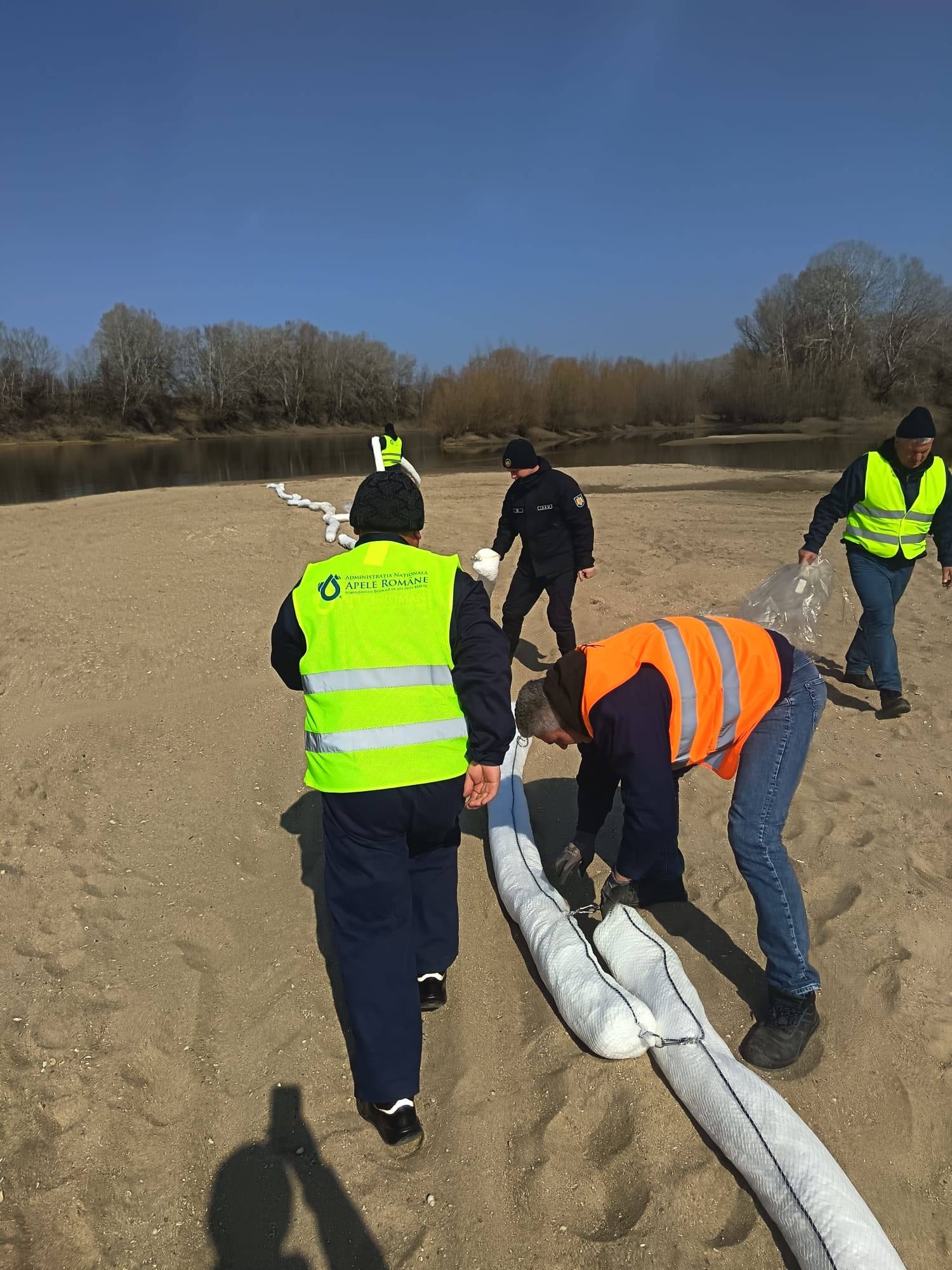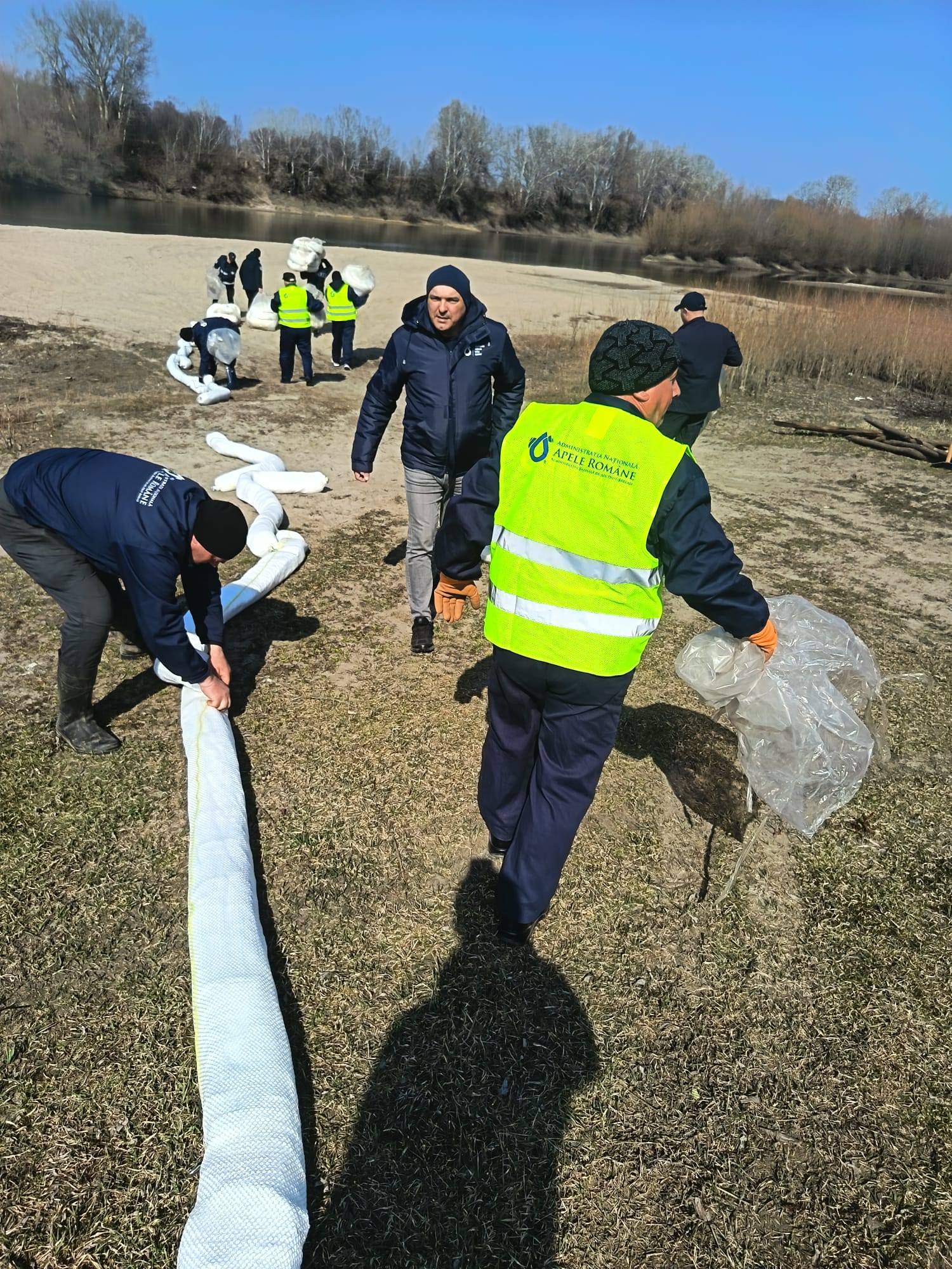 Echipele Administrației Naționale Apele Române sunt prezente a treia zi consecutiv pe râul Nistru, unde intervin pentru limitarea efectelor poluării cu hidrocarburi și protejarea captărilor de apă destinate populației din Republica Moldova.