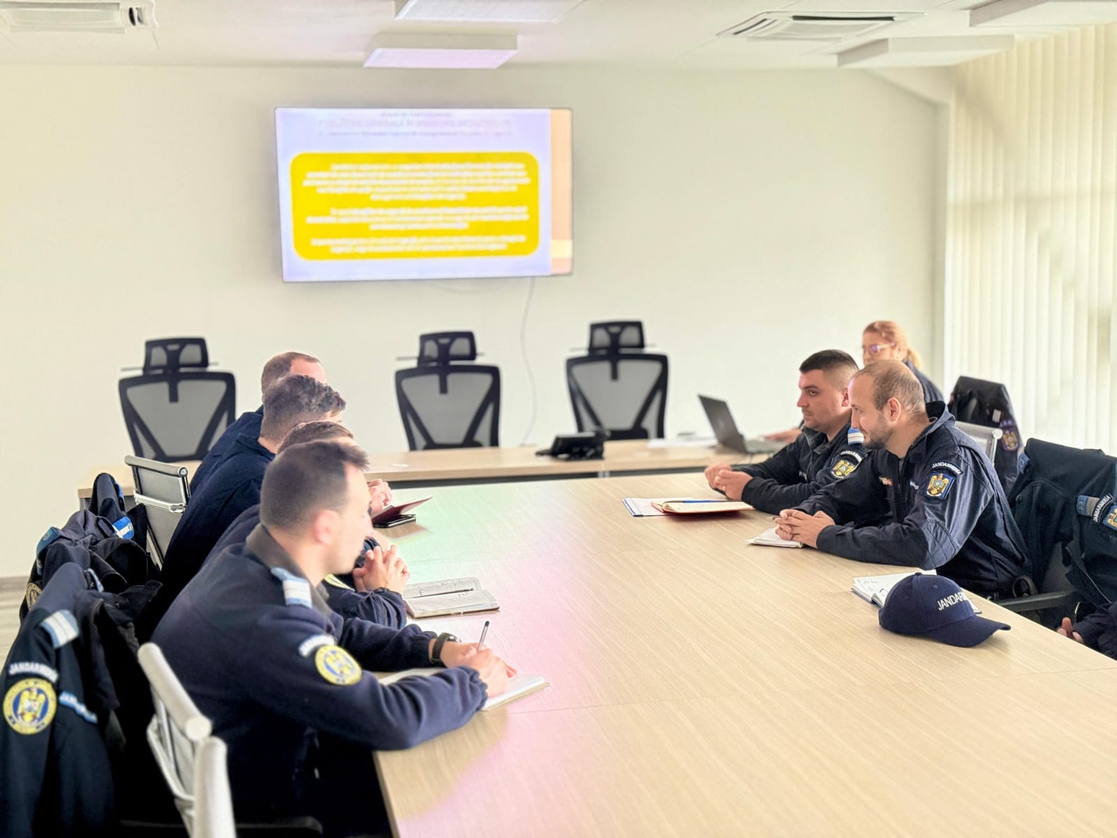 În cadrul aplicațiilor practice, jandarmilor le-au fost prezentate Postul Medical Avansat, Punctul Mobil de Comandă, containerul Multirisc și alte echipamente utilizate în intervenții complexe.
