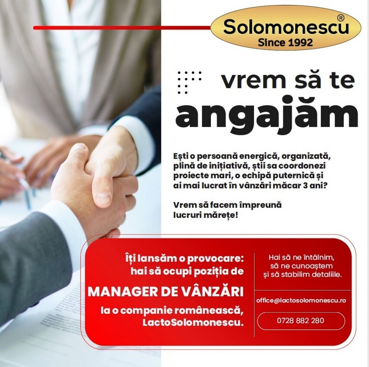Îți lansăm o provocare: hai să ocupi poziția de MANAGER DE VÂNZARI la o companie românească, Lacto Solomonescu.