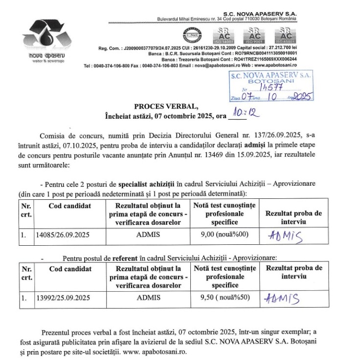 Proces verbal încheiat astăzi, 7 octombrie 2025