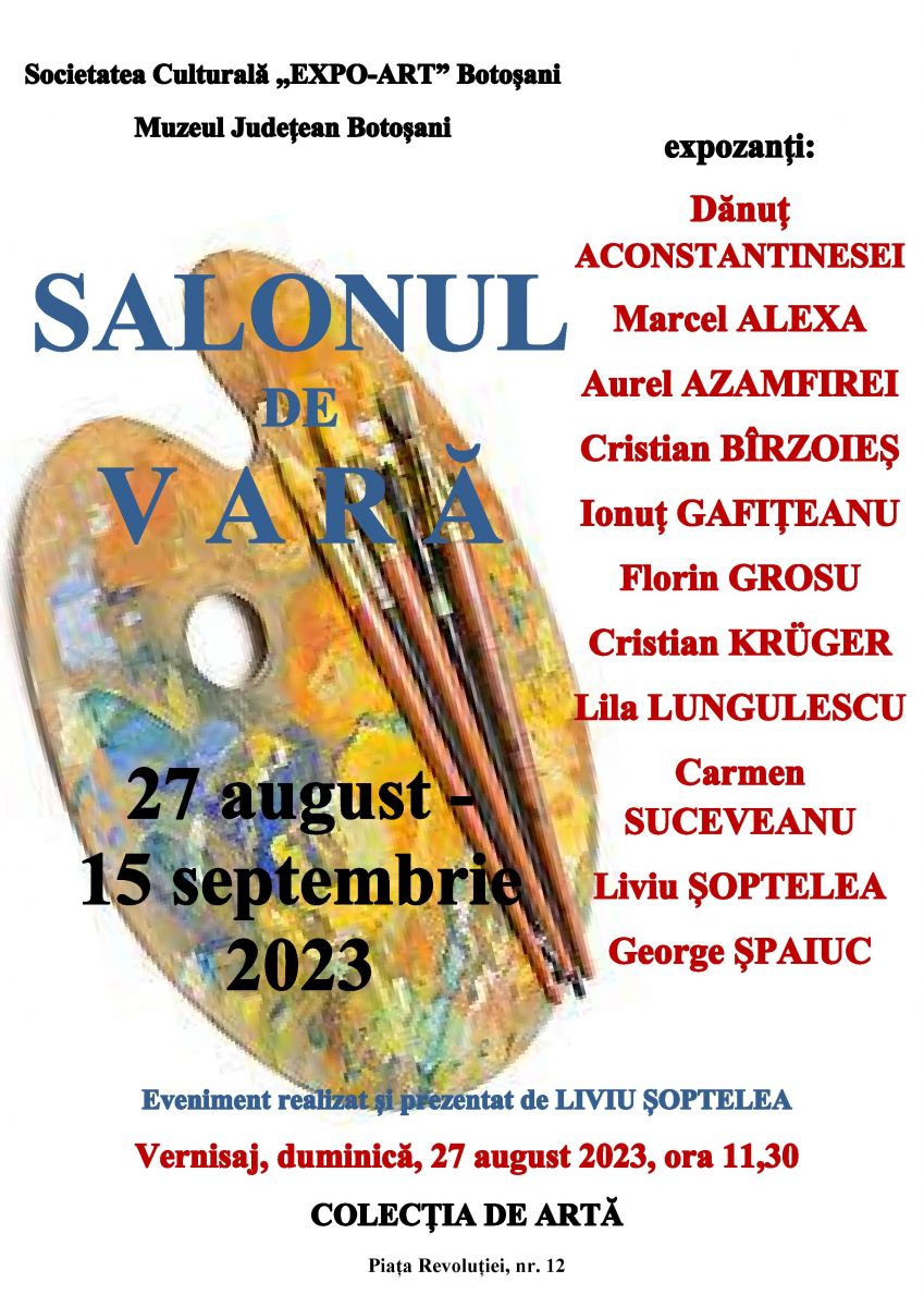 Muzeul Județean Botoșani, prin Secția de Artă Plastică – Etnografie, găzduiește, în perioada 27 august – 15 septembrie 2023, în spațiul Colecției de Artă, Salonul de Vară.