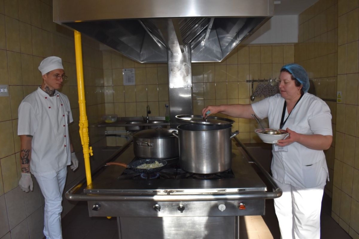 lucrează în bucătăria spitalului municipalității, în două schimburi. Doi dintre ei pregătesc masa zilnic pentru mai mult de o sută de pacienți în intervalul 6:00 – 14:00, ceilalți preiau ștafeta după amiezile pentru pregătirea gustărilor și cinei. Bogdan Pînzariu s-a integrat rapid în colectiv și a devenit ultimul membru al familiei sale profesionale: „Am fost primit foarte bine, colegii mei sunt foarte profesioniști în domeniul acesta și mi-a făcut plăcere”.