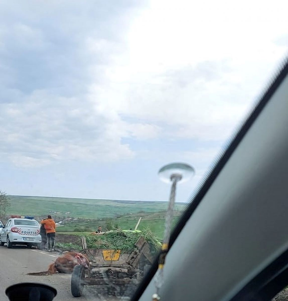 S-a întâmplat pe raza localității Ungureni, fiind implicate un atelaj hipo și un autoturism.
