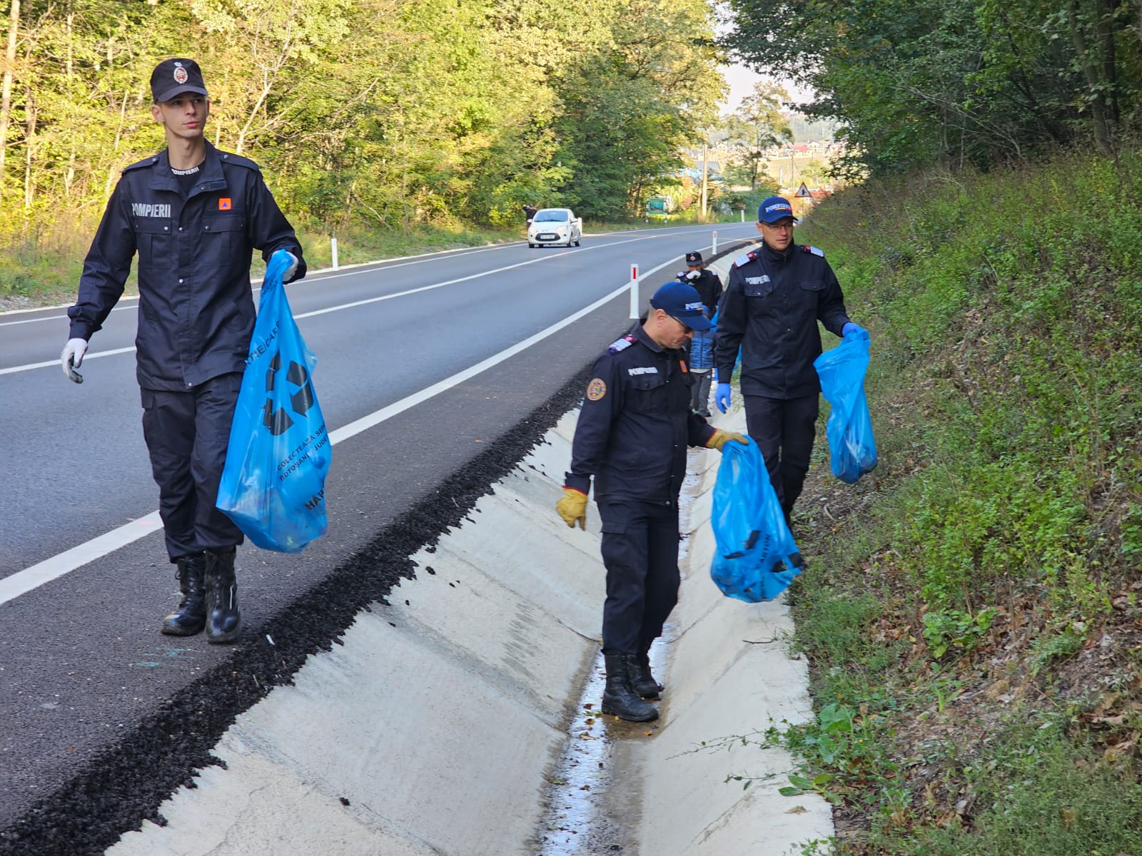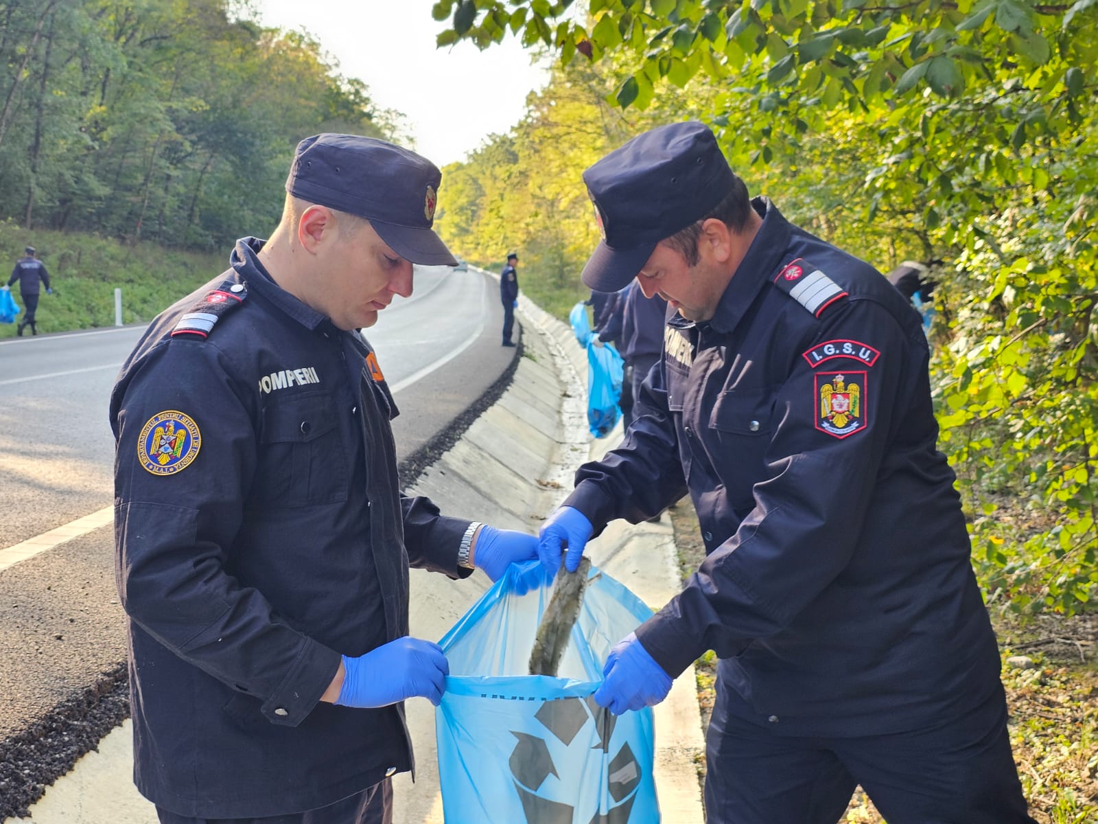 Zonele în care s-au deplasat pompierii au fost ecologizate, iar gunoaiele găsite au fost adunate și depozitate în saci de unică folosință.