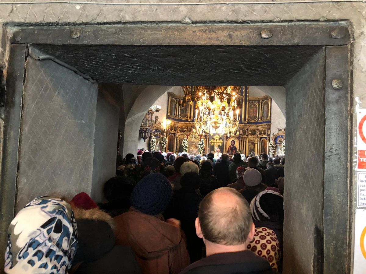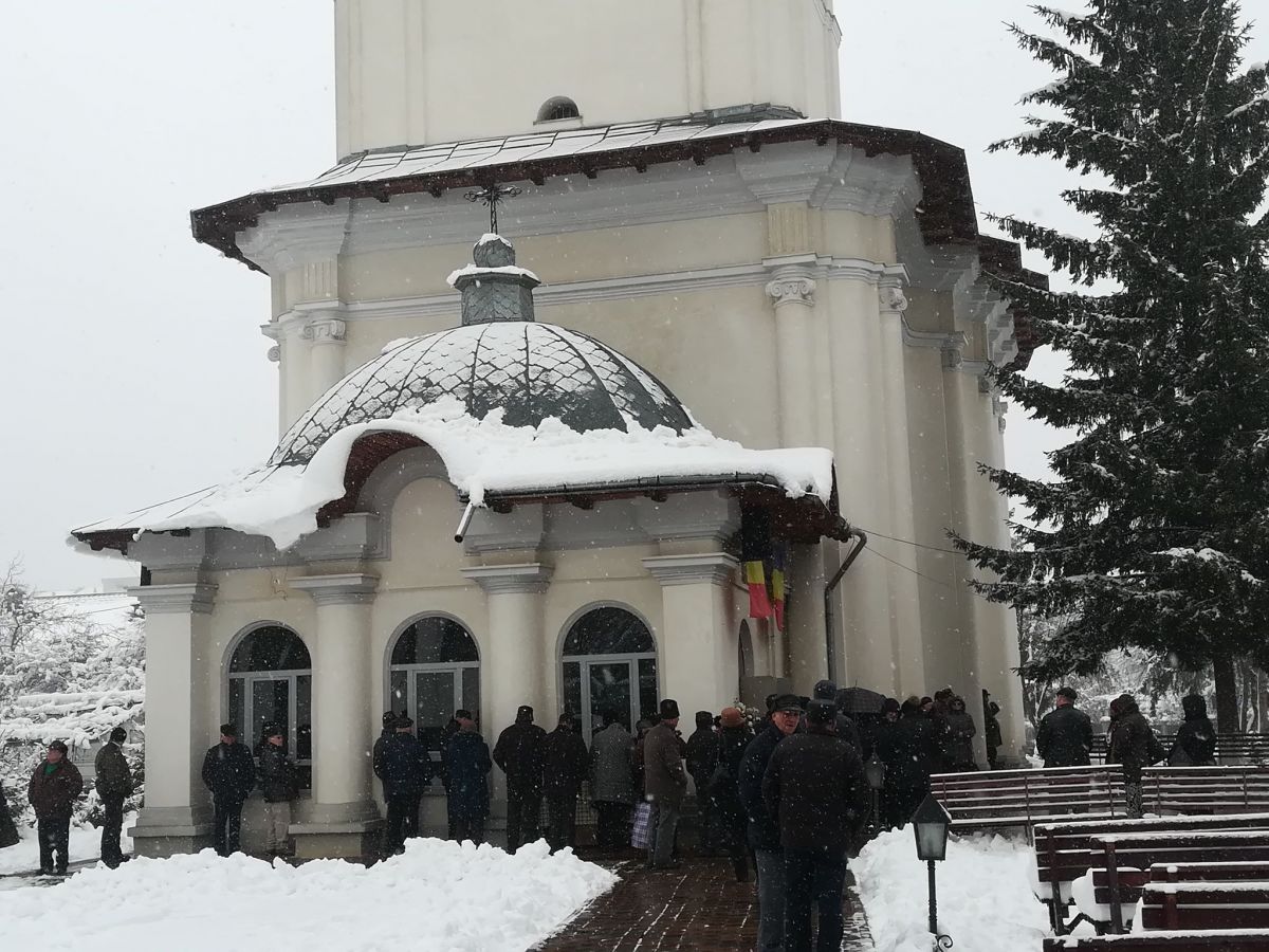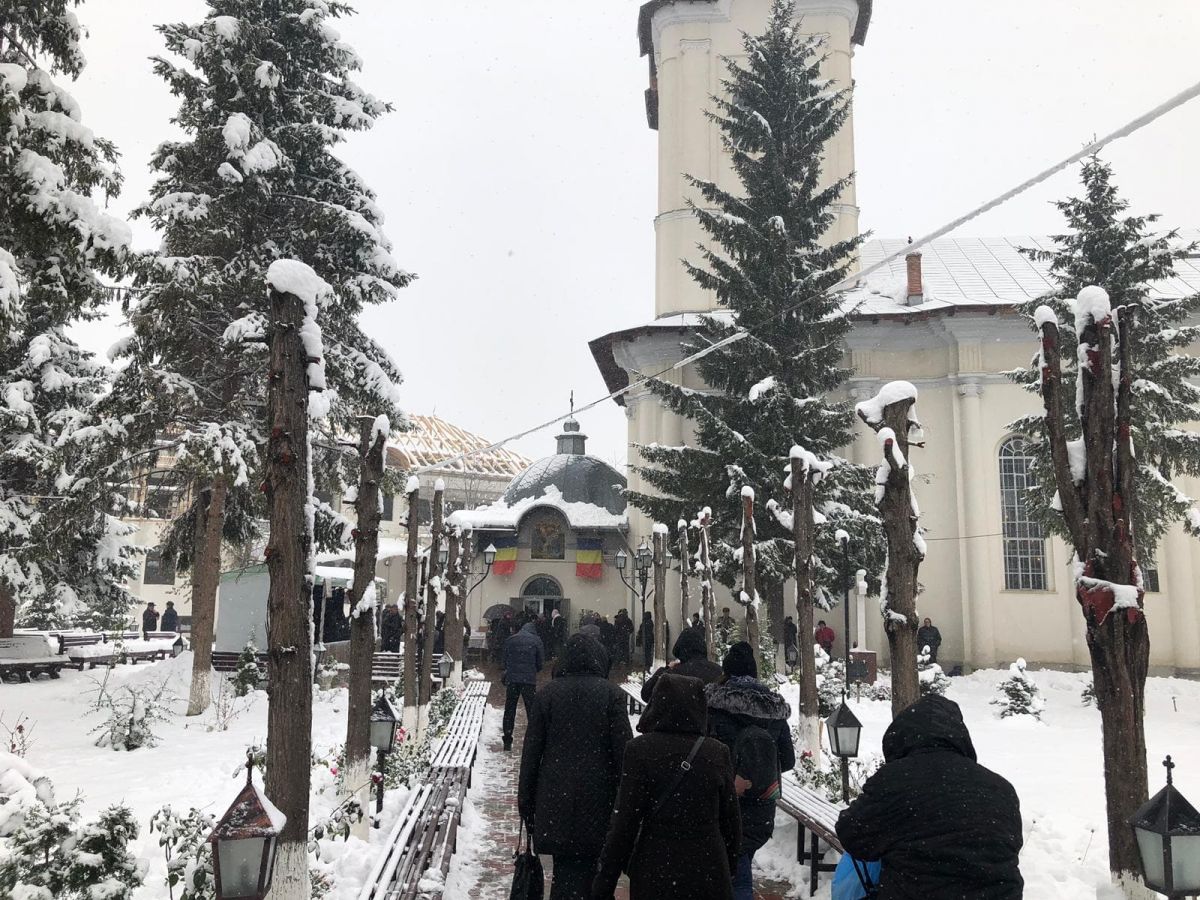 De aceea, zeci de botoșăneni au ascultat slujba de afară în ciuda faptului că afară ningea necontenit.
