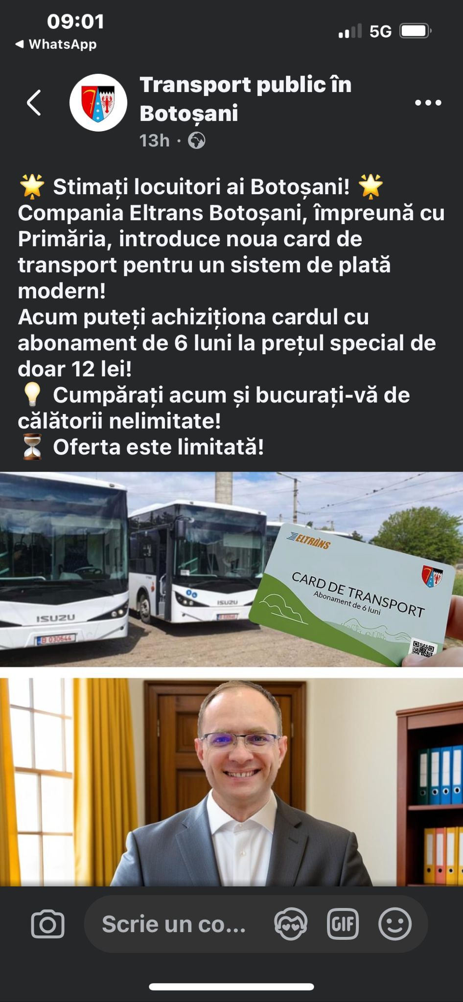 O pagină ivită peste noapte pe rețeaua de socializare Facebook, invită botoșănenii să își achiziționeze un presupus abonament la prețuri scăzute, la compania de transport public a orașului.