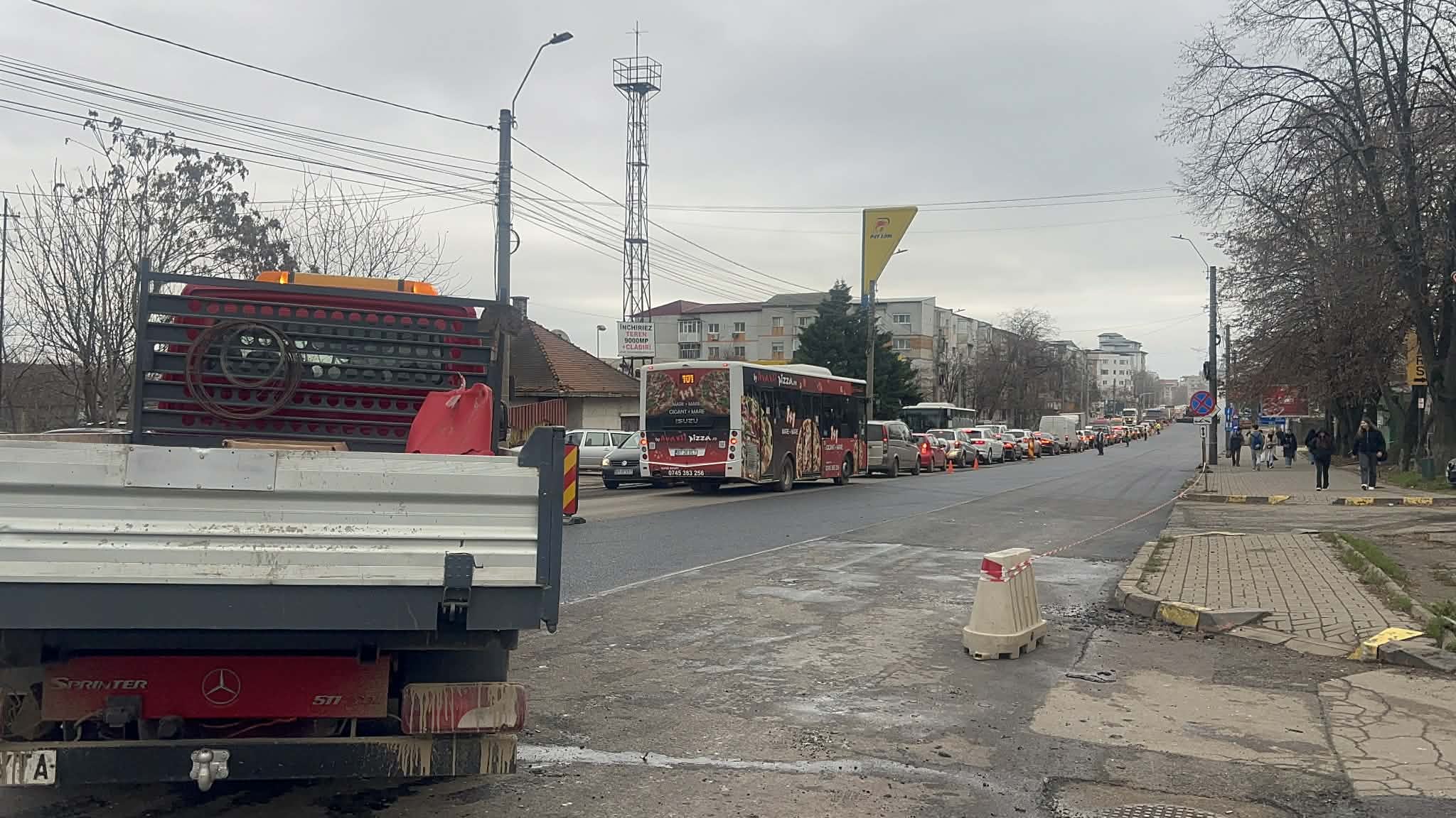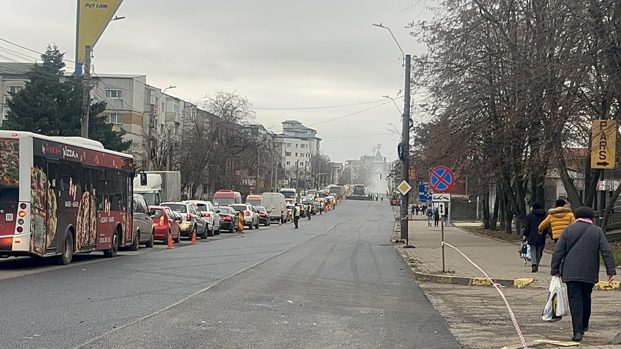 Turnarea stratului de uzură a început încă de ieri și se dorește ca în această săptămână să fie rezolvate ambele benzi de pe sensul de mers dinspre Kaufland.