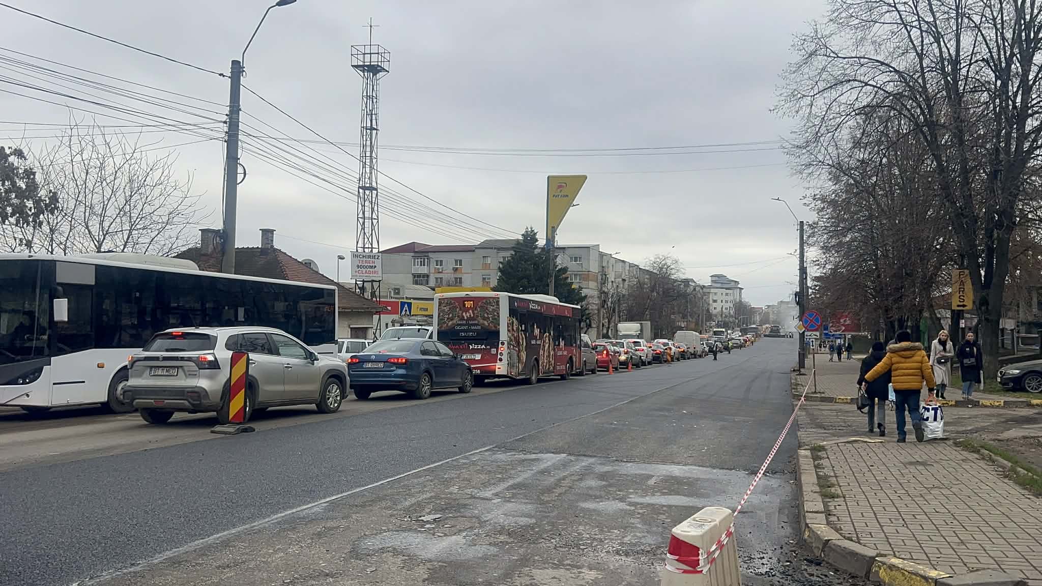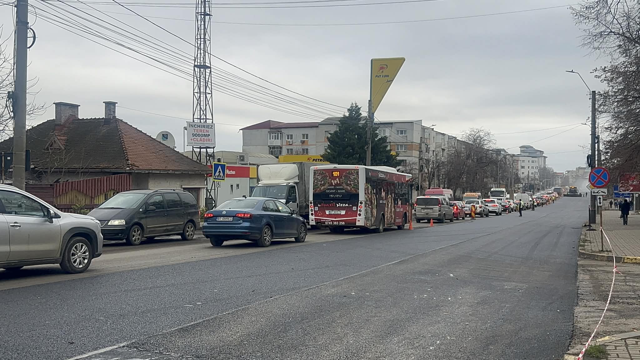 Traficul pe Calea Națională, porțiunea de la sensul giratoriu de la IRE către Zona Industrială se desfășoară în aceste momente cu mare dificultate.