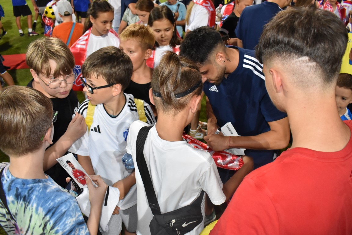 Ulterior, cei norocoși au prinși mingile șutate de fotbaliști în tribună iar cei cu mâna lungă au primit câte o eșarfă cu însemnele clubului.