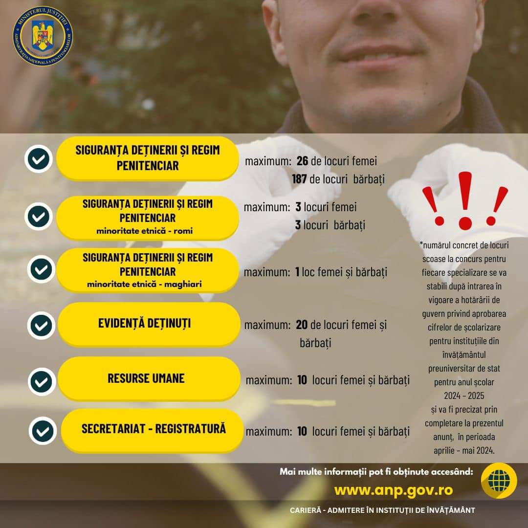 Informațiile suplimentare se regăsesc pe site-ul oficial al Administrației Naționale a Penitenciarelor, secțiunea Carieră – Admitere în instituții de învățământ.