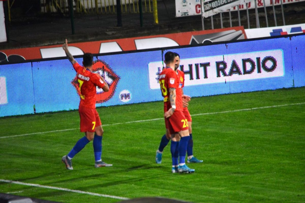 FCSB a deschis scorul după o jumătate de oră prin Coman, care a executat pe colțul scurt o lovitură liberă dintr-un unghi foarte dificil.