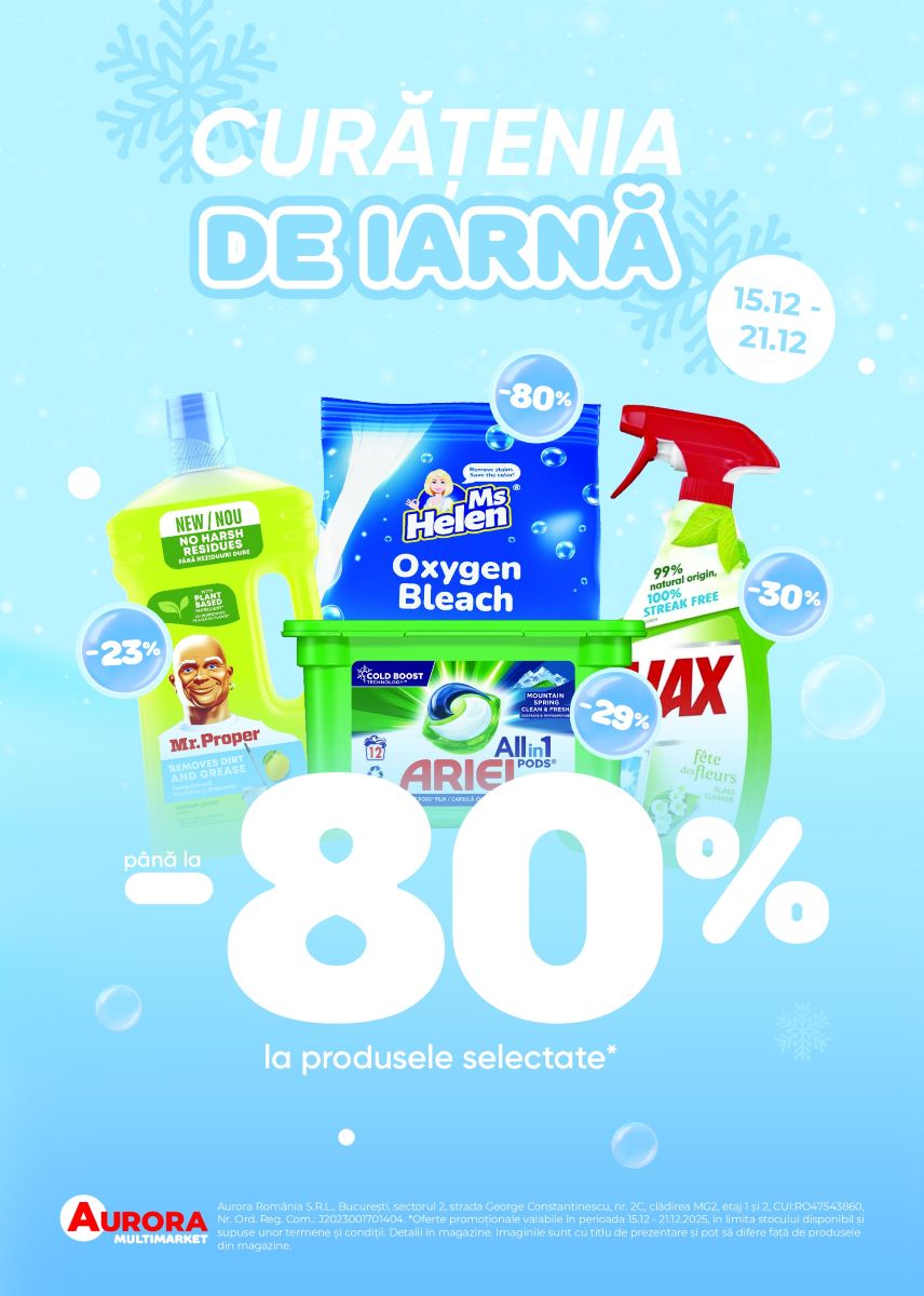 (P) Decembrie aduce din nou atmosfera magică a sărbătorilor în cele 64 de magazine Aurora Multimarket, iar clienții sunt invitați să se bucure de cele mai mari campanii ale anului. De la decorațiuni de Crăciun și jucării pentru cei mici, până la produse de curățenie și articole de înfrumusețare, luna decembrie vine cu valuri de discounturi spectaculoase, perfecte pentru pregătirea casei și a momentelor petrecute alături de cei dragi.