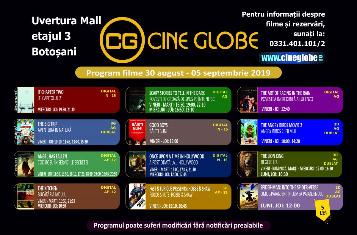 VEZI Programul Cine Globe Botoșani: