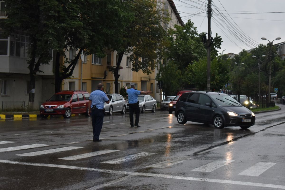 Polițiștii de la Serviciul Rutier și de la Locală au trecut la dirijarea circulației, numai că misiunea le-a fost îngreunată inclusiv de un conducător auto ajuns pe contrasens.