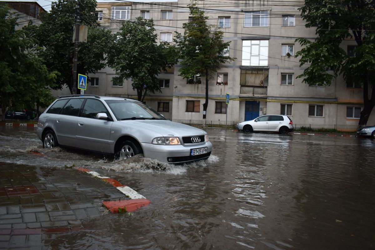 O furtună mai scurtă de jumătate de oră a fost suficientă pentru a transforma unele zone din Botoșani în lacuri de acumulare. Probleme au apărut în aceleași intersecții cunoscute de toți botoșănenii, fără ca SC Nova Apaserv SA, operatorul rețelei, să fi rezolvat vreodată problema.