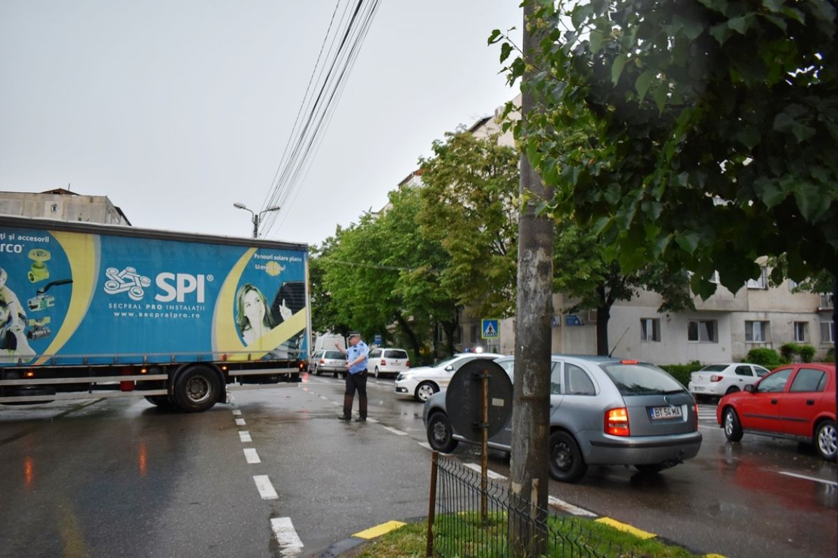 Cea mai gravă situație s-a produs în jurul orei 16:15 la sensul giratoriu Octav Onicescu – Împărat Traian.