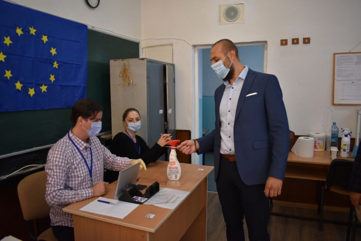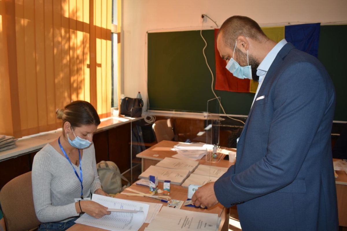 Candidatul independent la Consiliul Local Botoșani, Bogdan Cărăușu, a votat la Colegiul Național Mihai Eminescu, unitate unde a fost elev.