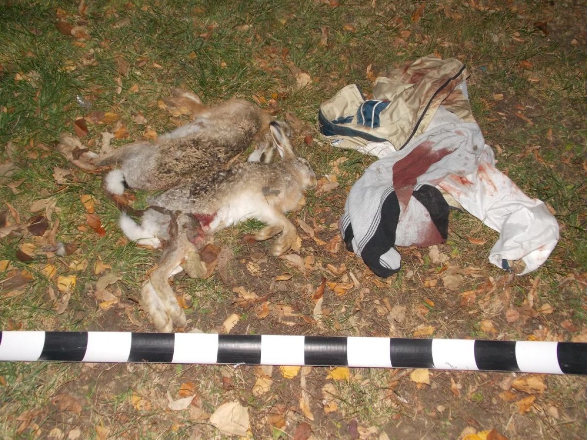 Iepurii din remorcă au fost prinși de câinii ogari care îi însoțeau pe braconieri, după ce aceștia au montat la bateria mașinii un far puternic, la lumina căruia au depistat vânatul.