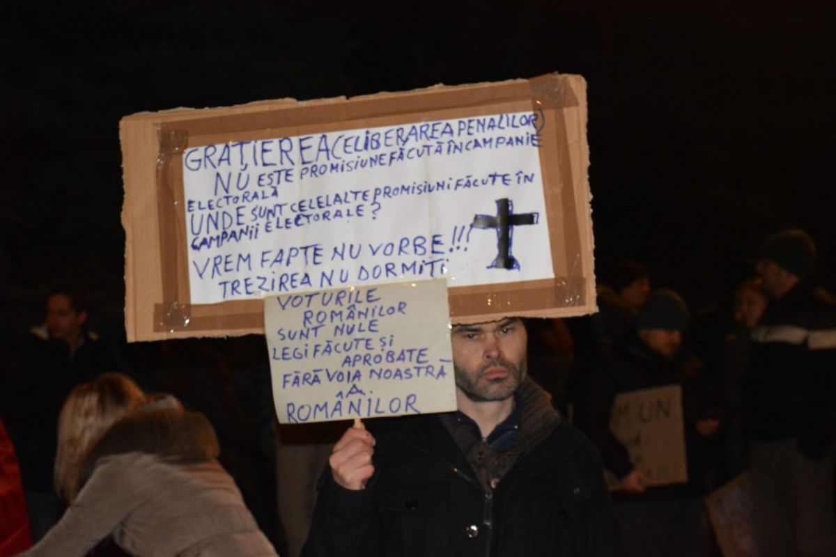Cei aproximativ 1.000 de botoşănenii care au mărşăluit şi sâmbătă seara prin oraş au revenit în Piaţa Revoluţiei chiar în timpul conferinţei de presă susţinută de premierul Sorin Grindeanu.