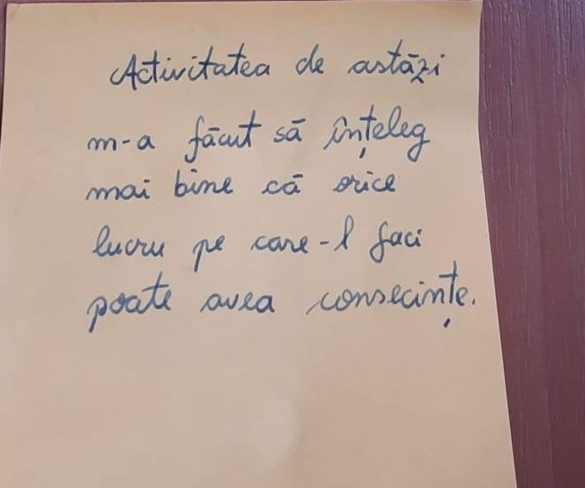 De asemenea, a reprezentat un bun prilej de meditaţie legată de deciziile viitoare care presupun asumarea unor comportamente infracționale și/sau adictive, pe de o parte, precum și consumul de alcool/droguri sau orice tip de adicții asupra capacității de luare a deciziilor viitoare, evidențiind factori protectivi precum părinții/familia, cadrele didactice, implicarea în activități legale și specifice vârstei, care presupun dezvoltarea acelor abilități de viață care nu lezează interesele celorlalți.