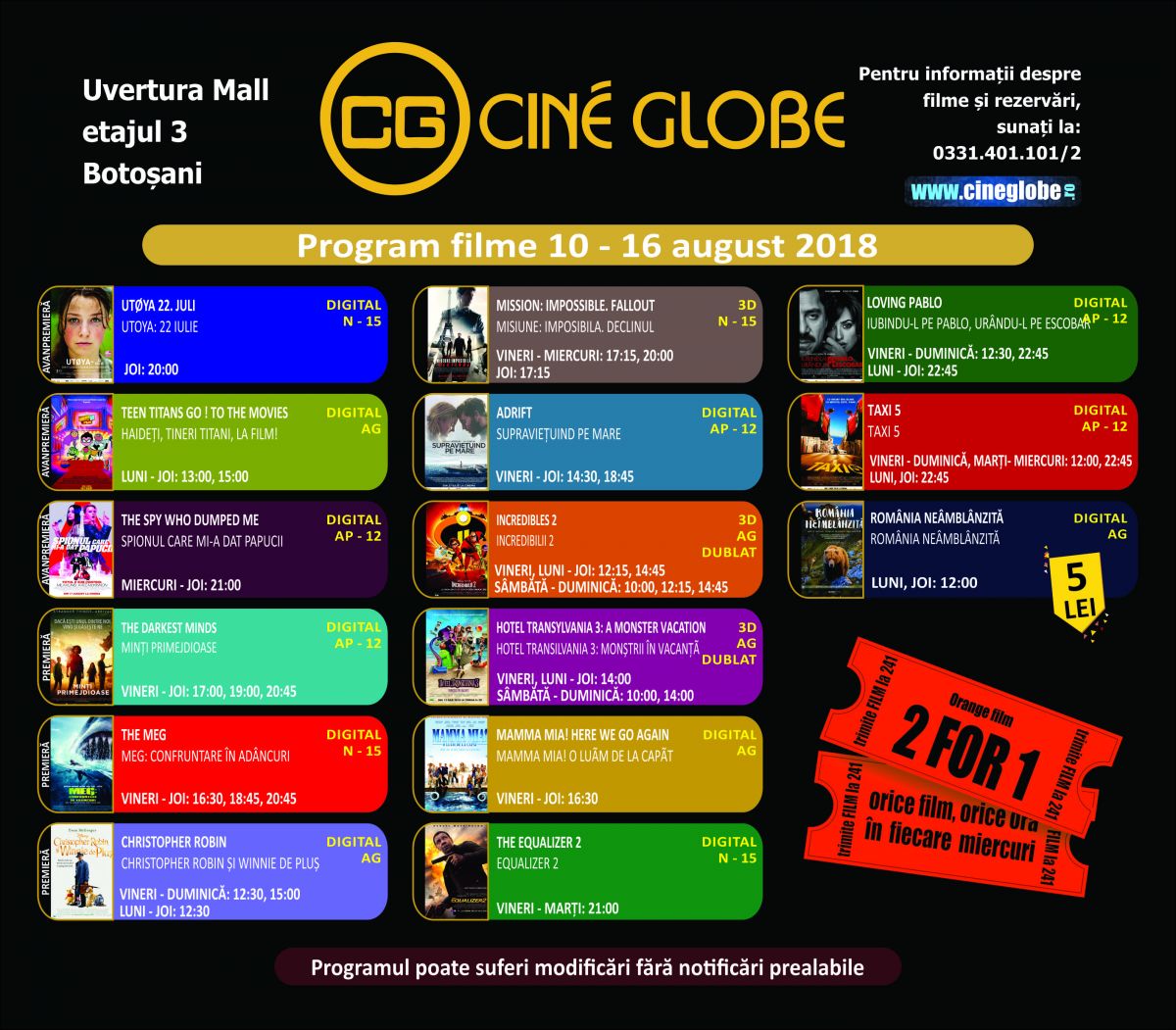 Vezi mai jos PROGRAMUL complet al filmelor care rulează la Cine Globe
