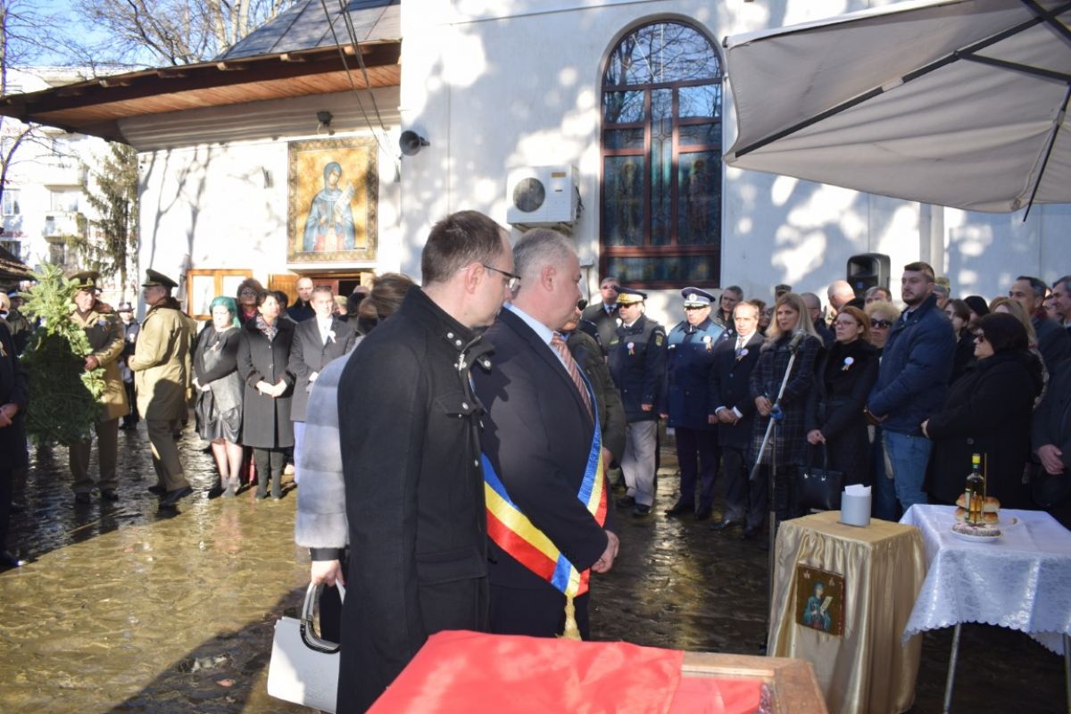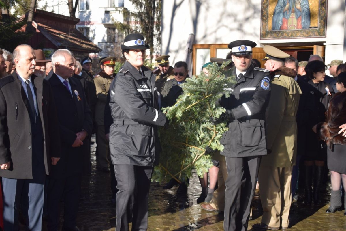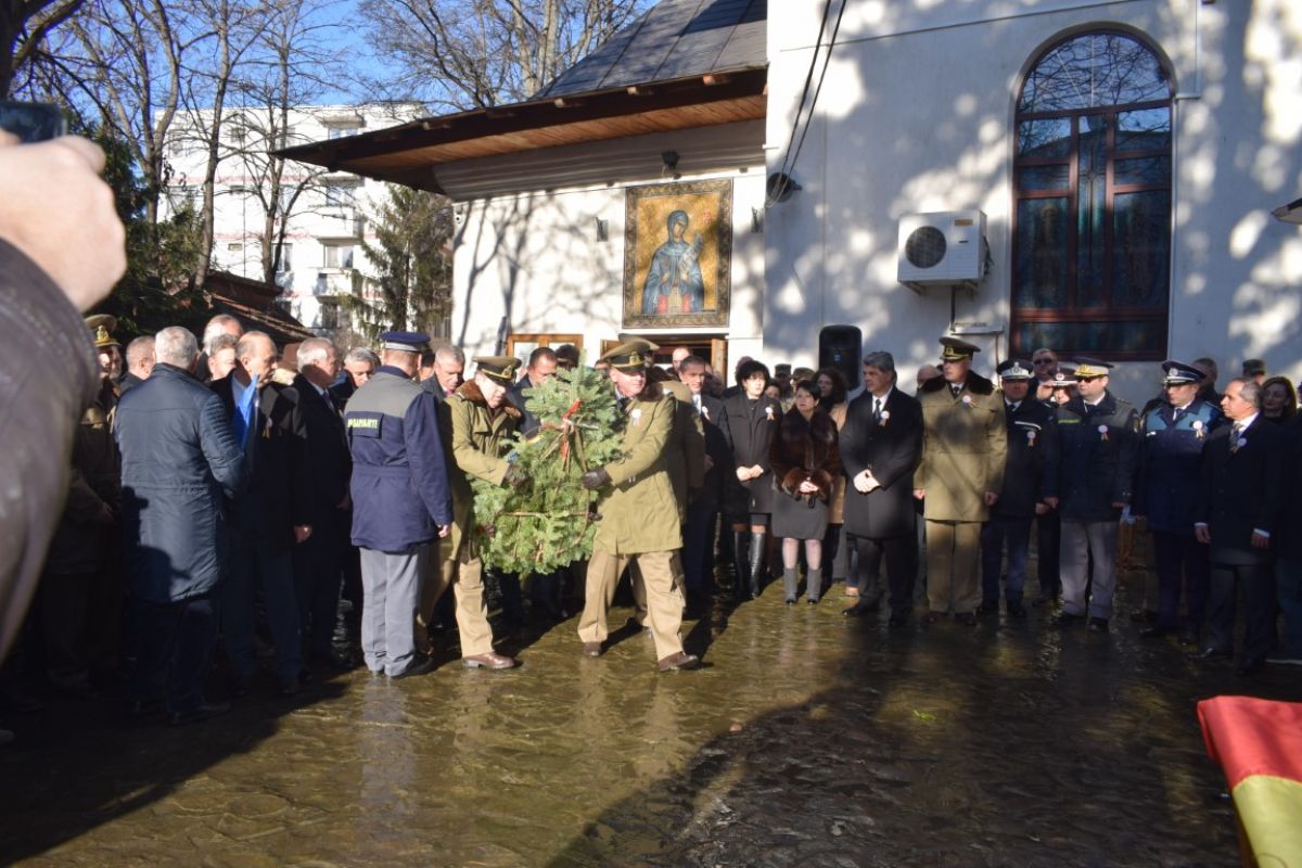 Jerbele de flori au fost depuse la Crucea din curtea Bisericii Sfânta Parascheva. Tot acolo s-a oficiat și slujba religioasă de preotul Grigore Diaconu și cel de la Capela Militară, Ștefan Grădinaru.