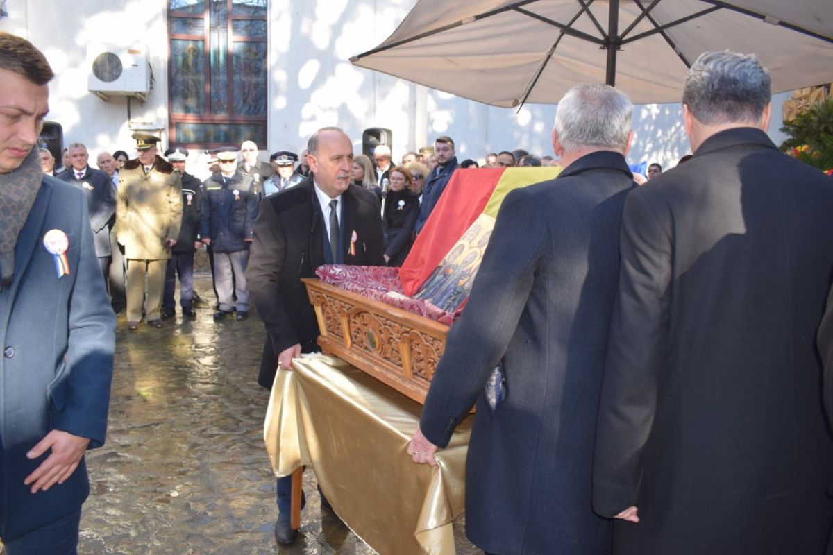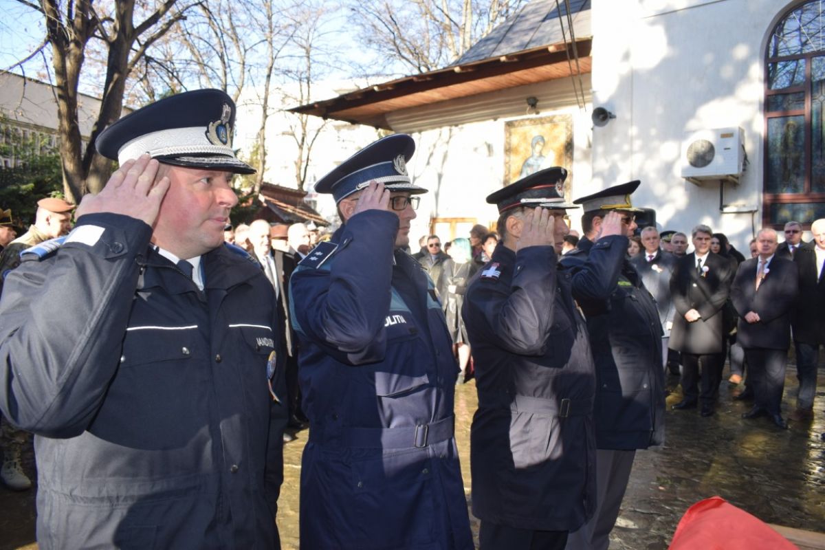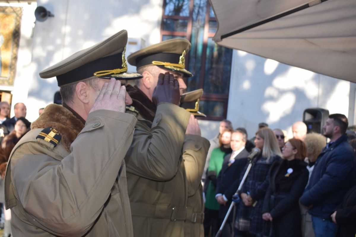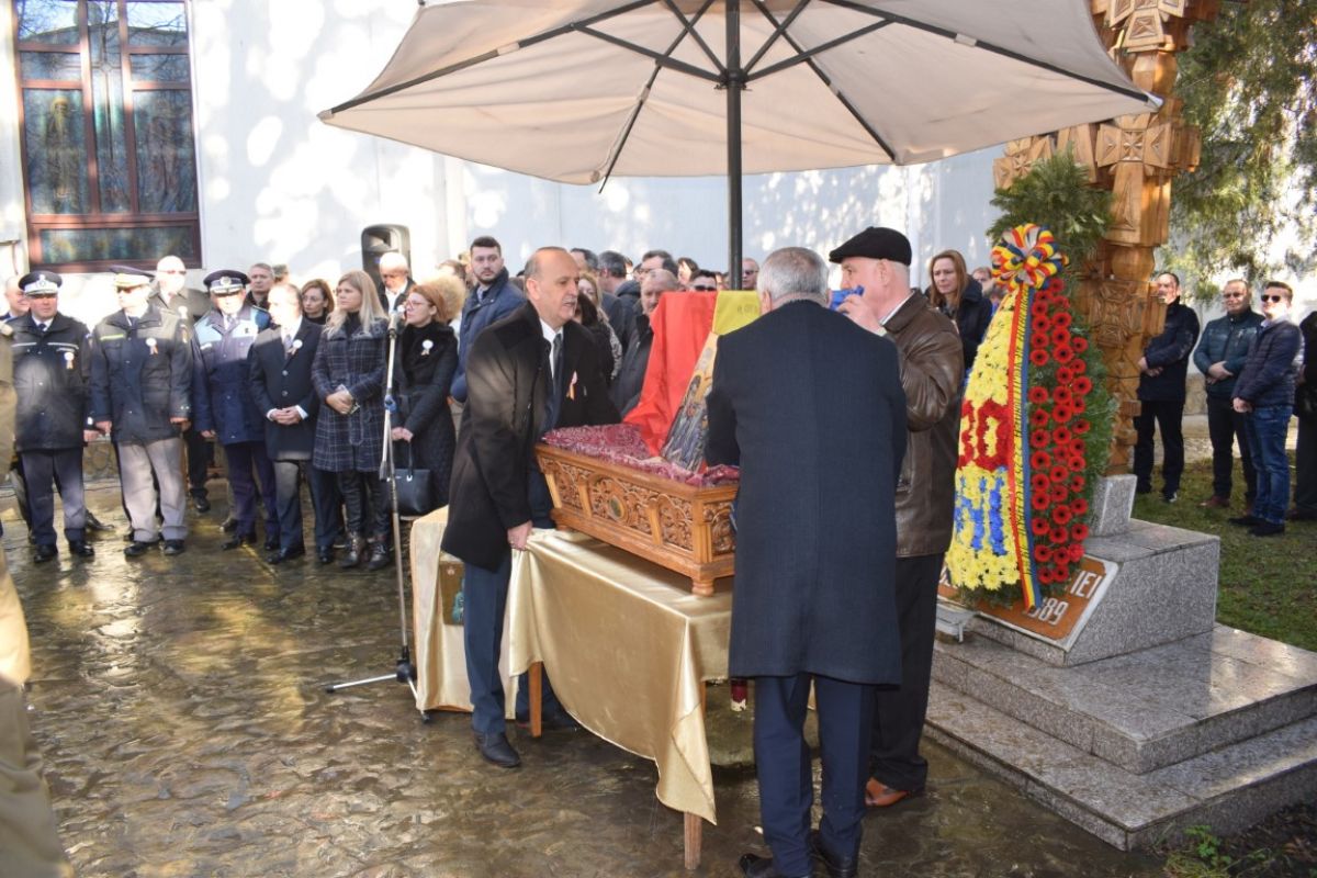 Jerbele de flori au fost depuse la Crucea din curtea Bisericii Sfânta Parascheva. Tot acolo s-a oficiat și slujba religioasă de preotul Grigore Diaconu și cel de la Capela Militară, Ștefan Grădinaru.