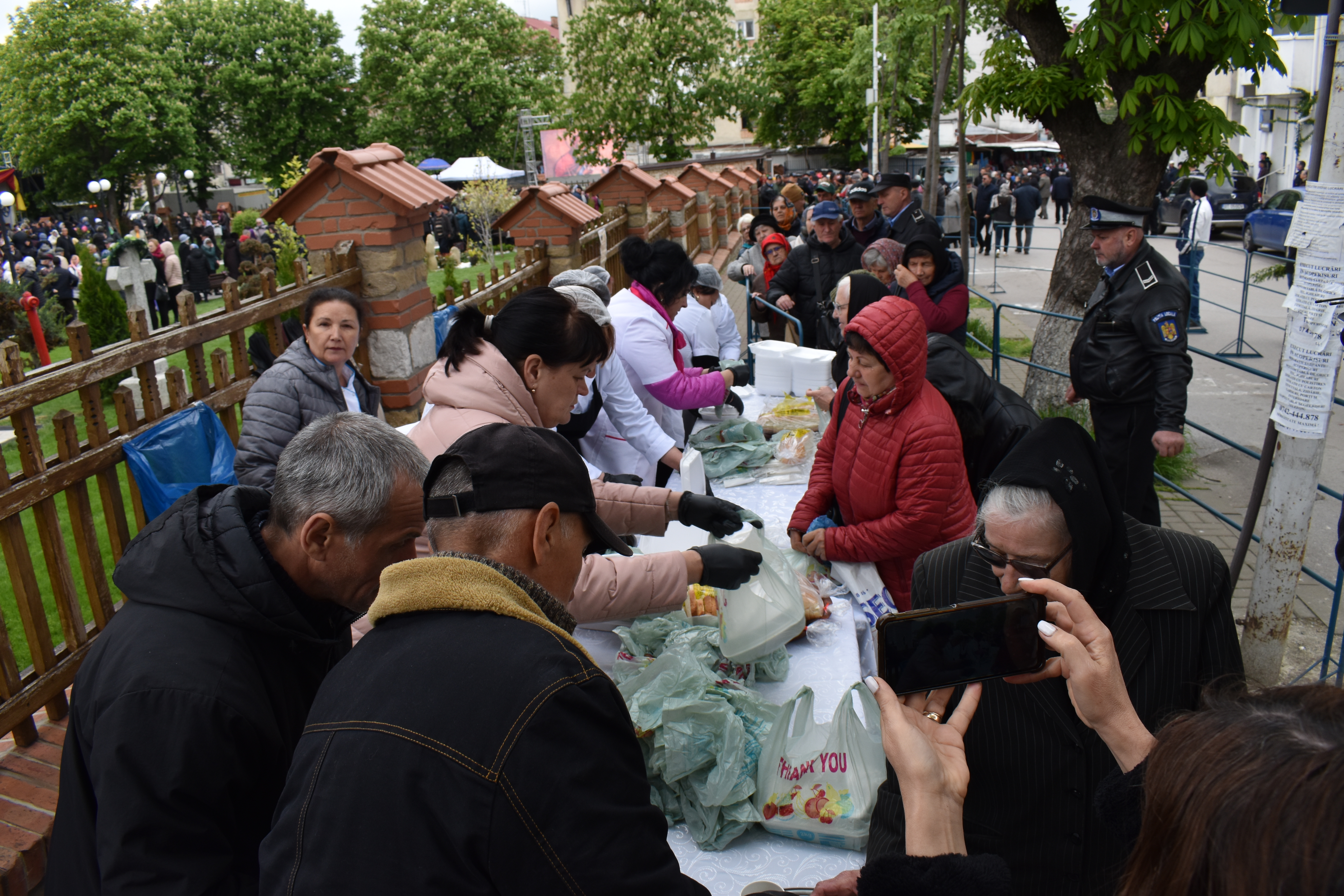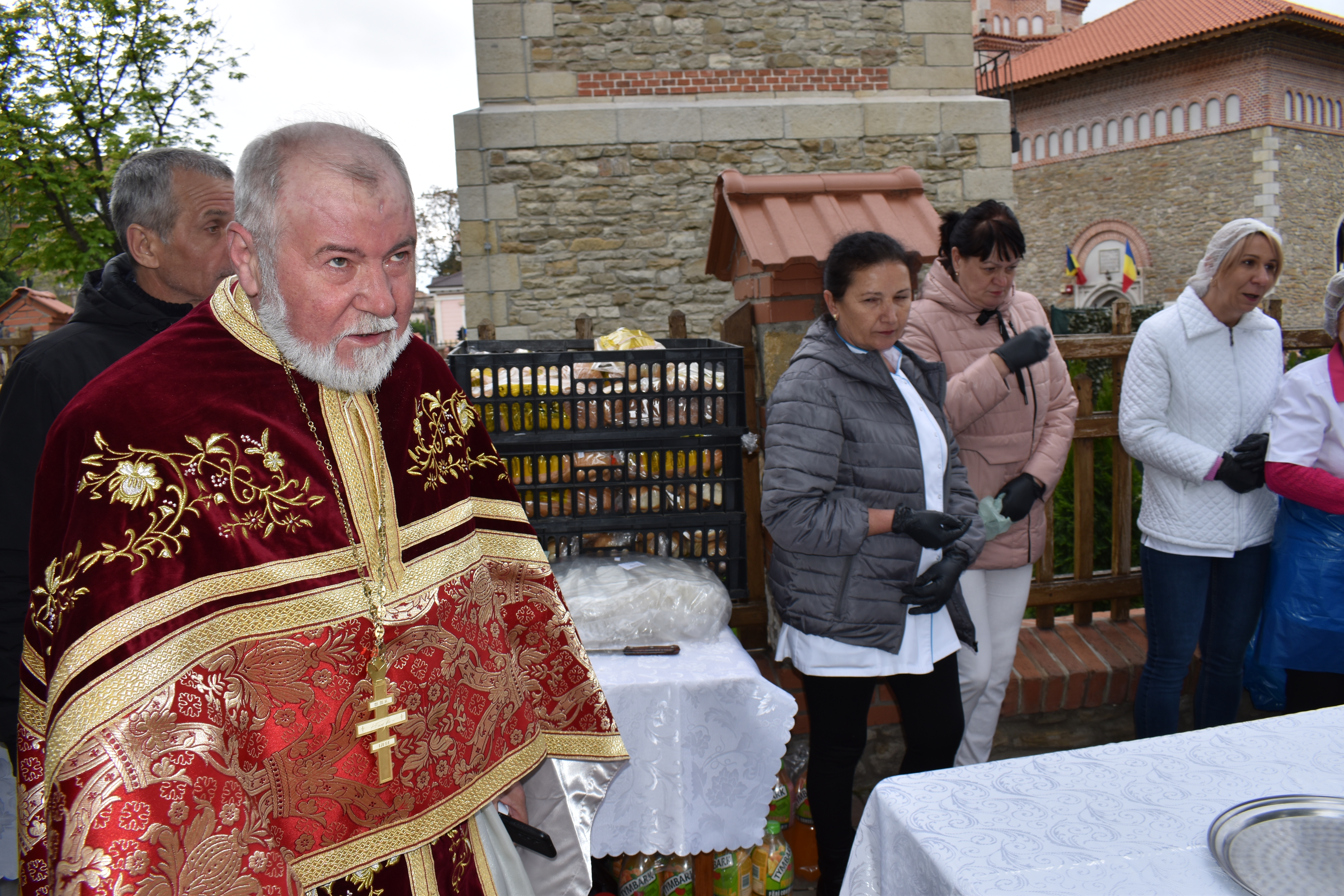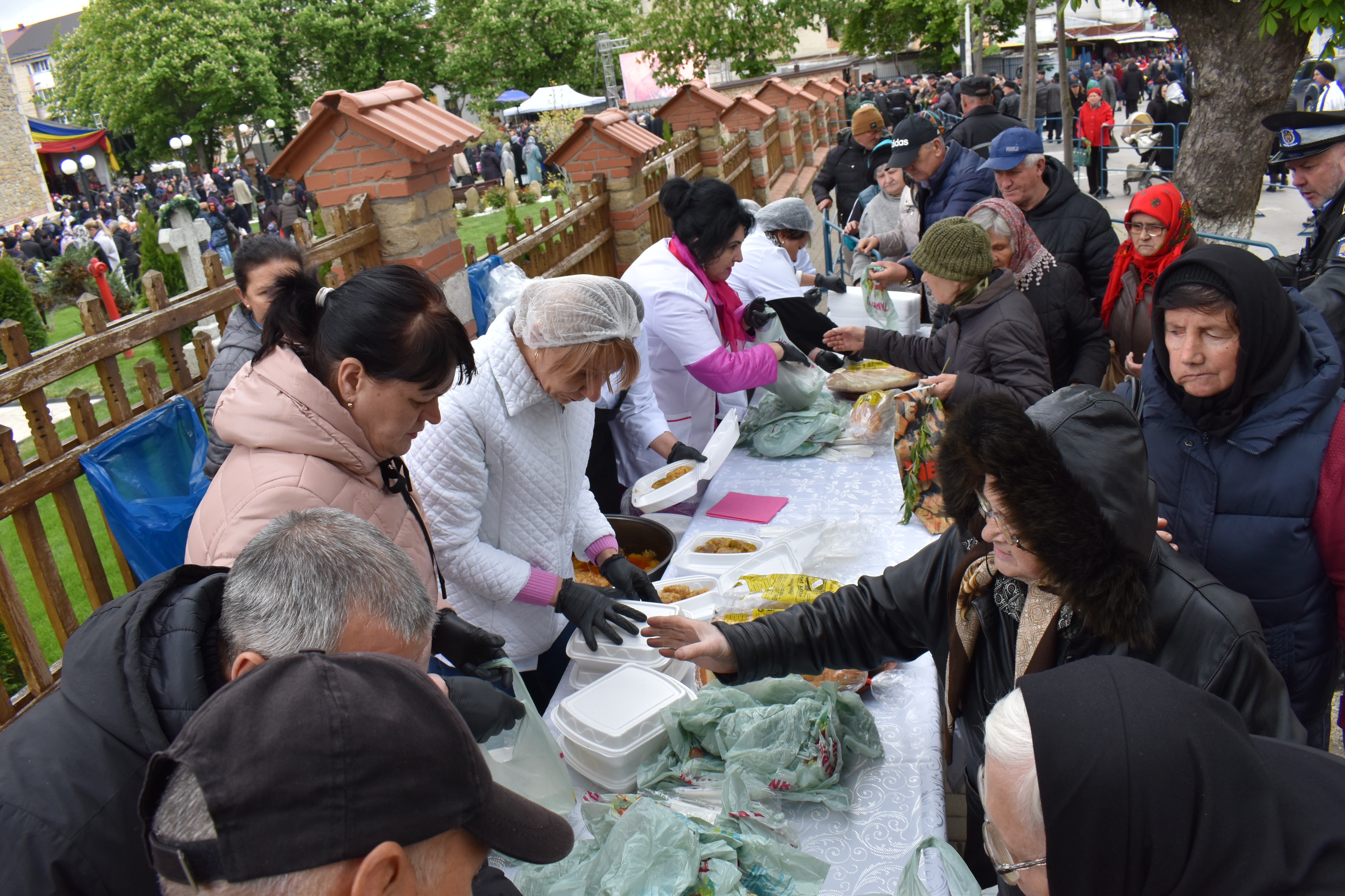 Preotul paroh al Bisericii „Sfântul Gheorghe”, Dumitru Mateciuc, a binecuvântat mai întâi bucatele, apoi botoșănenii au mers pe rând pentru a le primi.