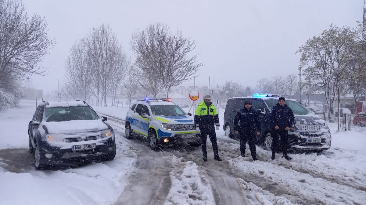 S-a luat măsura închiderii temporare a sectoarelor de drum în urma ninsorilor abundente, cu viscol la sol.