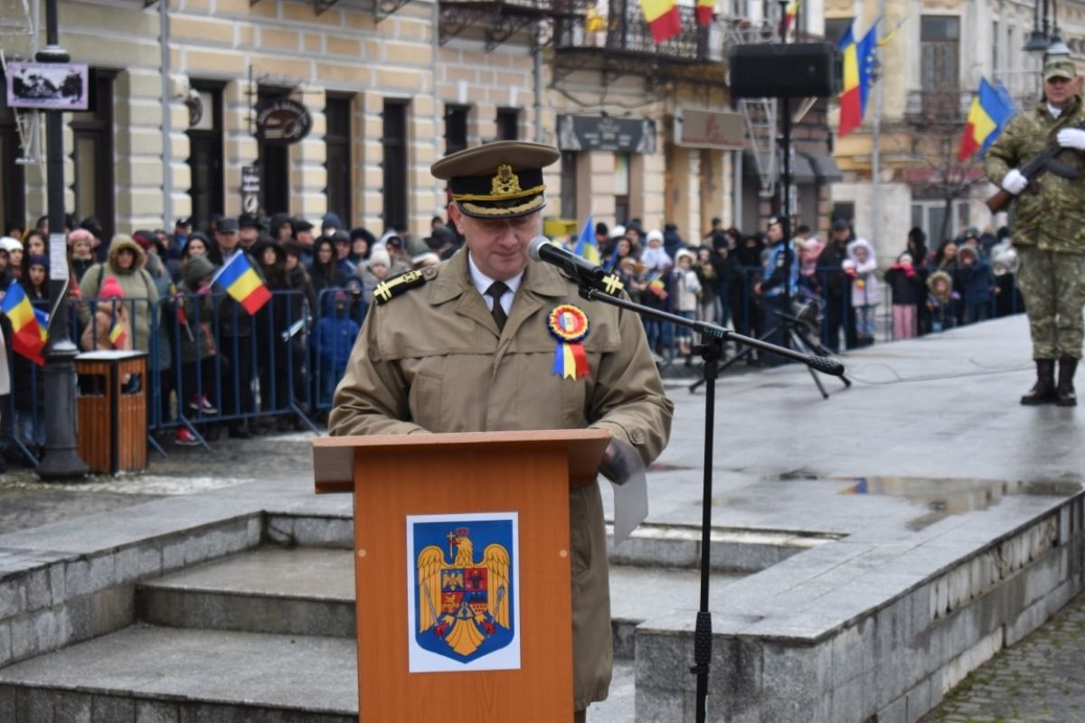 Ultimul discurs de la manifestările organizate de 1 decembrie i-a aparținut comandantului Garnizoanei Botoșani, Ovidiu Damian.