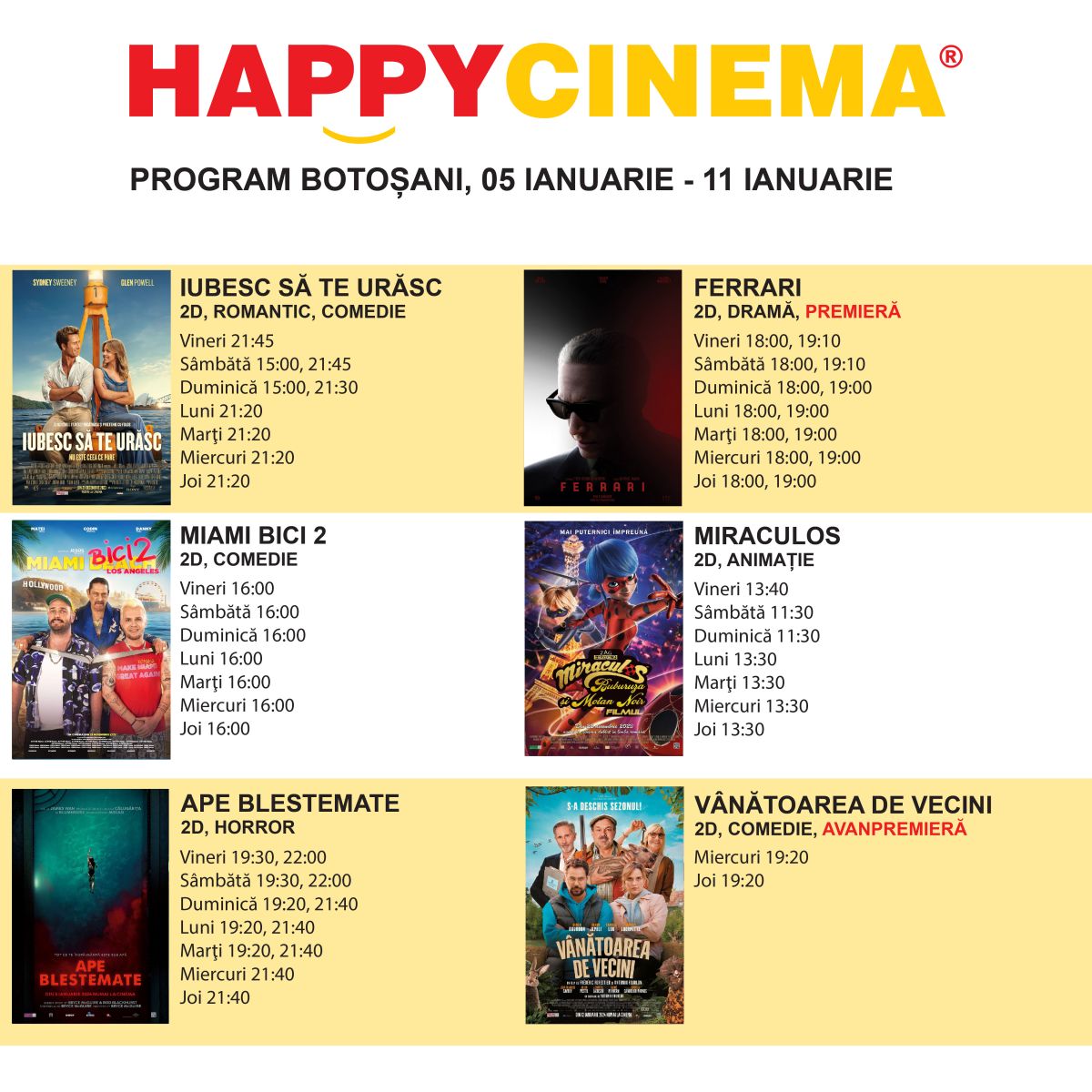 Iată programul complet de la Happy Cinema Botoșani pentru perioada 5 – 11 ianuarie 2024: